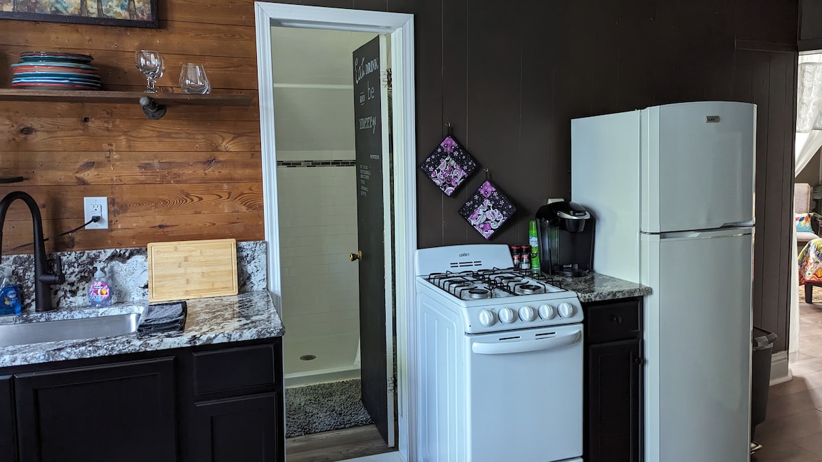 Bentonville şehir merkezinin göbeğindeki yapısal duvarlı misafirhane kulübemize hoş geldiniz. Tamamen tuğladan yapılmış tarihi bir binada zamanda geriye adım atmış gibi hissedeceksiniz, ancak arka bahçemizdeki kulübe 2023 yılında sevgi ve misafirperverlik emeğiyle tamamlandı. Bloğun sonundaki Park Springs Parkı'na ve patikalara doğrudan erişimin veya şehir meydanına kısa bir yürüyüşün/gezinin tadını çıkarın. Mülkteki ana evde yaşıyoruz, ancak kulübeyi misafirlerin mahremiyetini en üst düzeye çıkarmak için tasarladık. Hoş geldiniz!