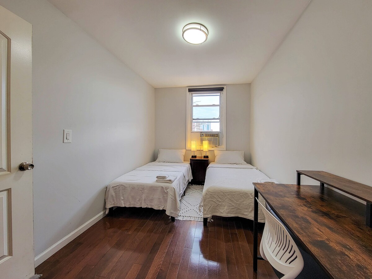 Evinizden uzaktaki bir ev. NJ-NY Özel banyosu ve ayrı girişi olan geniş oda, çarpıcı NYC manzarasından 4 blok uzakta. Midtown NYC'ye 7/24 otobüs servisine sadece 1 blok. 4 kişi rahatça uyuyabilir: queen boy yatak, ikiz yatak ve ranza, hepsi yeni çarşaflı. Düz ekran TV, kablo, kablosuz internet bağlantısı, klima ve ısıtmanın keyfini çıkarın. Manhattan'a sadece 25 dakika, Brooklyn, Queens veya Bronx'un çoğundan daha yakın. New York'u ziyaret etmek için ideal bir yer.