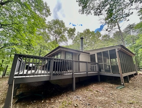 Berkeley Springs şehir merkezine 20 dakika mesafedeki bu yeni yenilenmiş kütük kulübede vahşi ve harika Batı Virginia'nın tadını çıkarın. Geniş ön verandadan ormanlık manzaraların tadını çıkarın, taş ateş çukurunun etrafında s'more yapın, kapalı güneş odasındaki jakuziye dalın, odun sobasının önünde bir kitapla kıvrılın ve sinema salonu benzeri çatı katında rahatlayın. Kulübeden dakikalar içinde özel bir göle ve inanılmaz yürüyüş parkurlarına erişebileceksiniz.