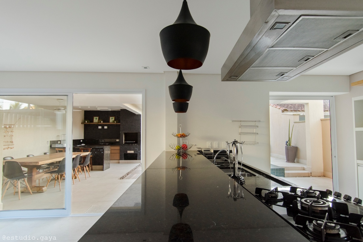 Plaja çok yakın (30 metre). Dinlenmek ve denizin sesini dinlemek için ailenizle birlikte bu konforlu yere gelin. *RİVIERA'DA DEĞİL* 📍 Ev, Praia da Enseada'da, Jardim das Canções semtinde, SESC'nin yanında bulunmaktadır. ✨Çok az hareket olan sessiz sokak 🏠Yeni ve modern bir yapı 🛋️Rahat bir dekor 🍽️İyi donanımlı mutfak ve barbekü alanı 💧 Ozonlu ve güneş enerjisiyle ısıtılan havuz ☀️ Kışın güneş varken maksimum 26°C'ye ulaşır. Derinlik: 1,40m 🚐 Minibüs kabul etmiyoruz.