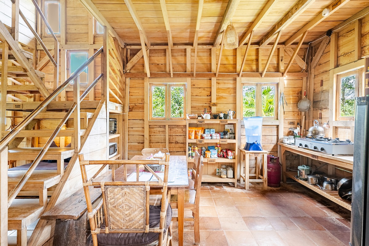 Çocukluk hayallerinizdeki ağaç evde konaklamayı deneyimleyin. Bu ağaç evin içeri ve verandaya yuvarlak kapılardan girilmesi, Hobbit filmlerinden esinlenmiş olmasını daha da özel kılıyor. 15 metre yükseklikteki asma köprüden geçerek Hobbit ağaç evinize varış macerasını hayal edin. Kuşların cıvıltıları eşliğinde uyanın ve ara sıra maymunları izleyin. Restoranımızdan oda servisi sipariş edin ve verandada veya çatı terasında tadını çıkarın. Daha sonra, yakındaki tenha bir şelaleye rehber eşliğinde yürüyüşe çıkın.