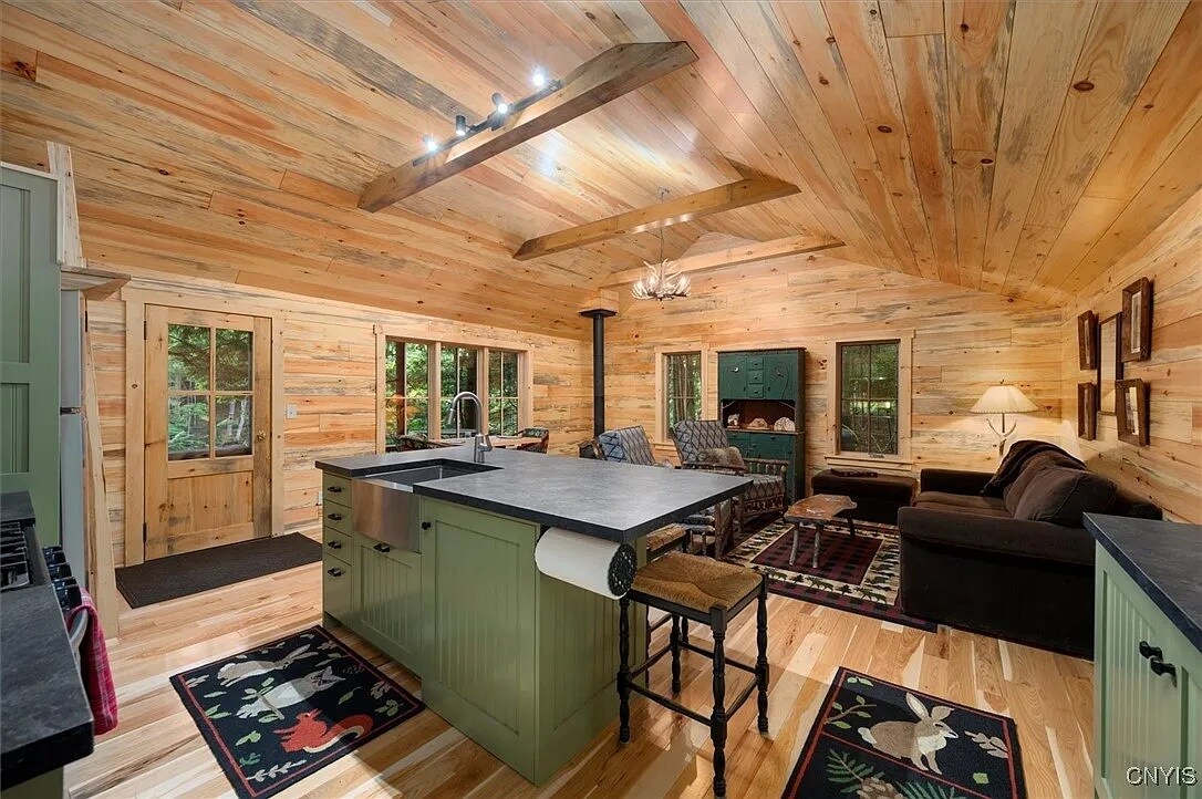 Granit tezgahlı lüks mutfak. Tezgahta 5 kişi, yemek masasında 10 kişi oturabilir. Oturma odasında gazlı şöminenin etrafında 10 kişilik oturma yeri ve oyun masalı büyük bir TV bulunmaktadır. Tempur - pedikal bulut şiltesi King Ana Yatak Odası ve misafir için de queen boy. Ranza odasında 2 tam boy normal şilte ve 2 ikiz yatak, (3) tam banyo bulunmaktadır. Ev otomatik jeneratör ile donatılmıştır. Adirondack'ın keyfini çıkarmak için harika bir aile kaçamağı.