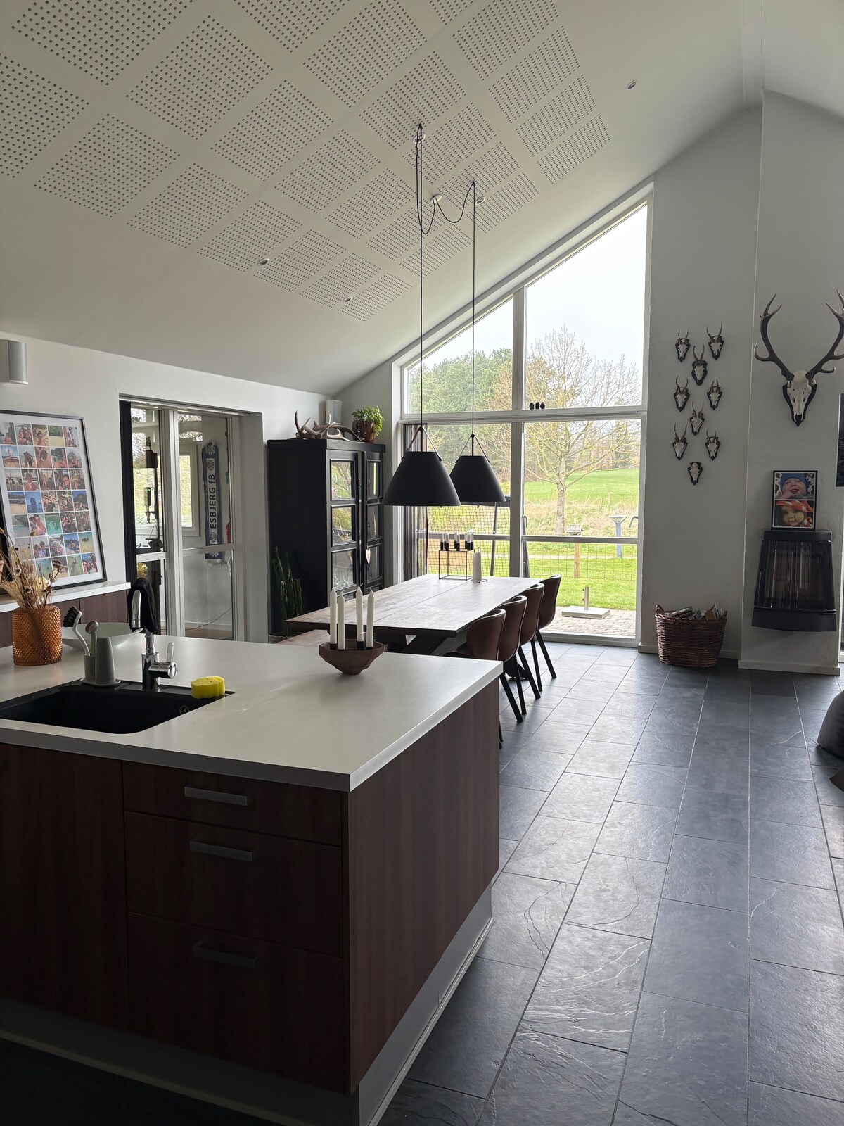 Göle ve tarlalara bakan büyük bir ev. Ev, bazı harika günler için ihtiyacınız olan her şeyi içerir. Konaklamanızı gerçekten özel kılan konforlu yataklar, bilardo masası, TV, teras, ızgara ve kış bahçesi. Evin kalbinde, ihtiyacınız olan tüm aletlerin bulunduğu güzel, geniş bir mutfak-oturma odası yer alıyor. Buz küpleri ve diğer lüks eşyaların bulunduğu Amerikan buzdolabı. 1 yatak odası (çift kişilik yatak) ve 2 kişilik oturma odasında makyaj yapma imkanı. Temiz çarşaf ve havlu verilecektir. Esbjerg C ve Havaalanı'na yakın aydınlık ve büyüleyici ev