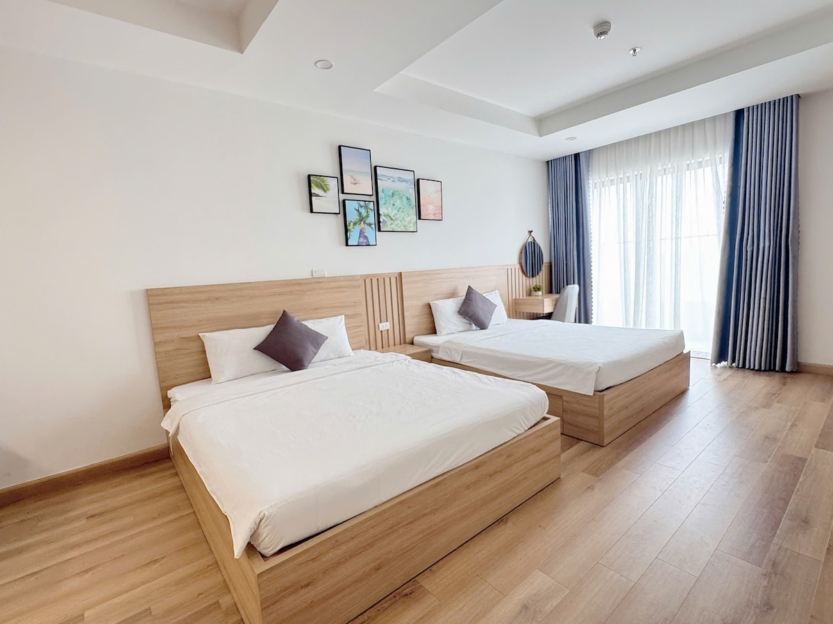 Discover the ultimate relaxation in our stunning one bed apartment with breathtaking ocean views. Located in a prime coastal area, Coastal Dream Escape offers the perfect blend of modern comfort and serene seaside living. – 50 meters walk to the Beautiful Beach. – 10m to the Quy Nhon War Museum – 950 meters away from Long Khanh Pagoda – A lot of shopping malls, local foods, stylish coffee shops & bars etc. nearby.