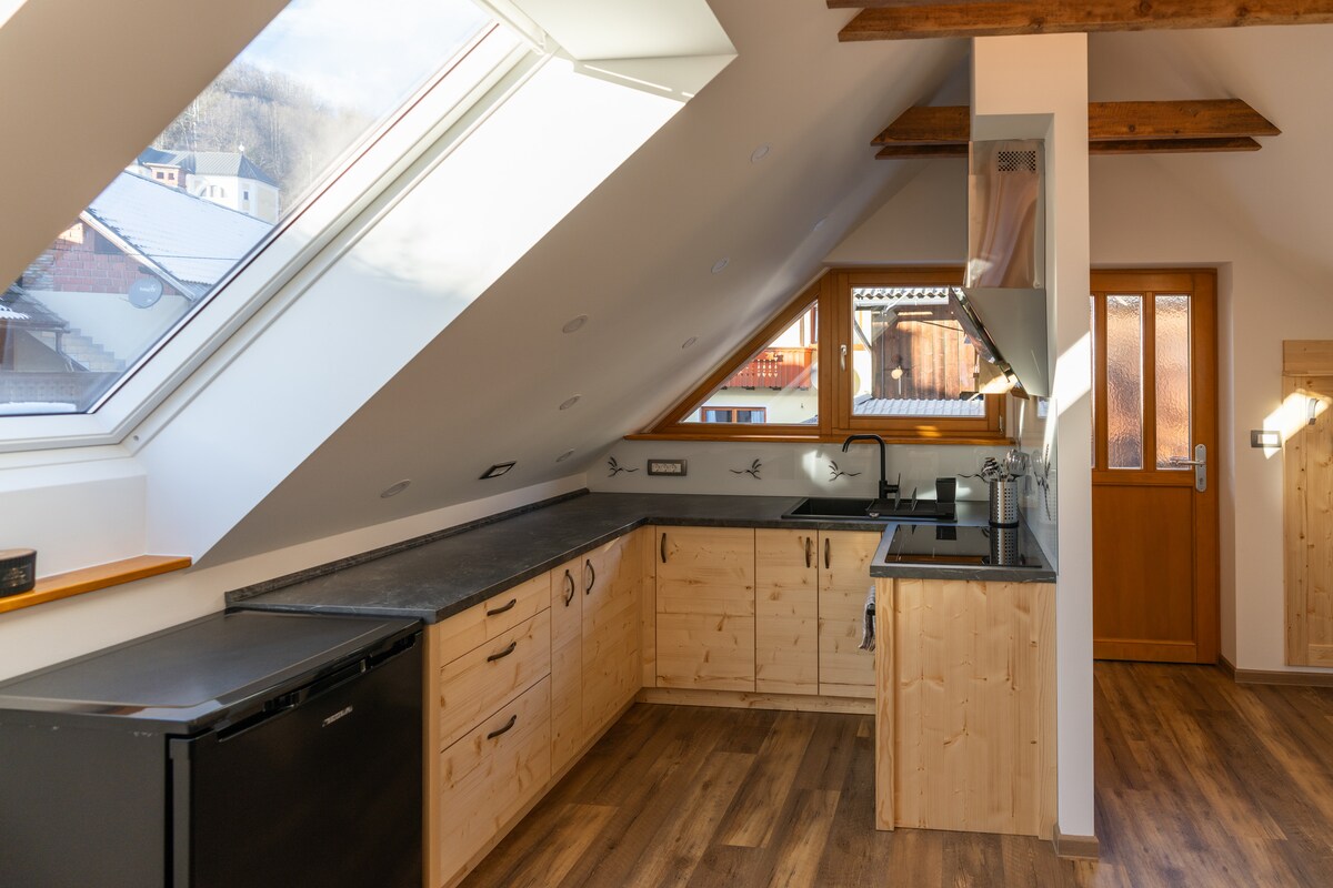 Gabrijel Apartmanı, şehrin koşuşturmacasından uzak, bozulmamış bir doğada huzurlu bir konumda bulunmaktadır. Burada huzurun, sessizliğin ve temiz havanın tadını çıkarabilirsiniz. Evin yanından akan Jezernica deresi hoş bir şırıltı sesi çıkarır. Küçük mutfak, ev yapımı çaylar ve düzgün Sloven kahvesi hazırlamanız için yeterince geniştir. Bu içeceklerden birini yaparak, atların otladığı komşu meranın manzarasına sahip güzel bir terasta dinlenebilirsiniz.