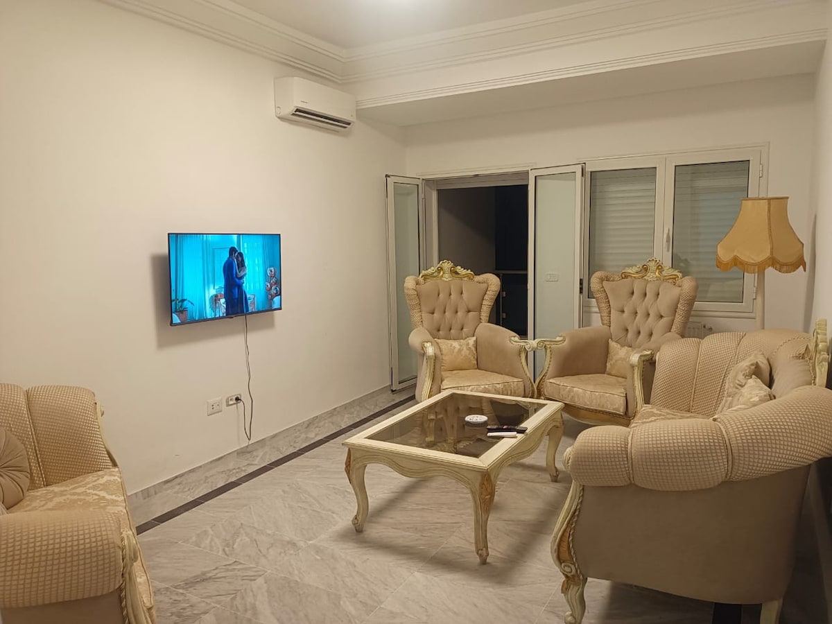 Okyanus manzaralı daire , merkezi konumlu bir yer. Şehir merkezi, eski Madina, Corniche bizerte, özel plaj, havuz , gündüz ve gece eğlencesi, 4 yıldızlı restoran ve kahve dükkanı, gece hayatı grubu , çocuklar ve aile dostu ve en önemli, son derece güvenli ve güvenli yerlere yürüme mesafesindedir. 5 kişiye kadar barındırabilen özel bir dairede kalacaksınız, 1 çift kişilik yataklı oda ve 3 BiG kanepeli bir oturma odası. Her odada özel klima kontrolü vardır. Geniş, klima , ücretsiz KABLOSUZ İNTERNET BAĞLANTISI.