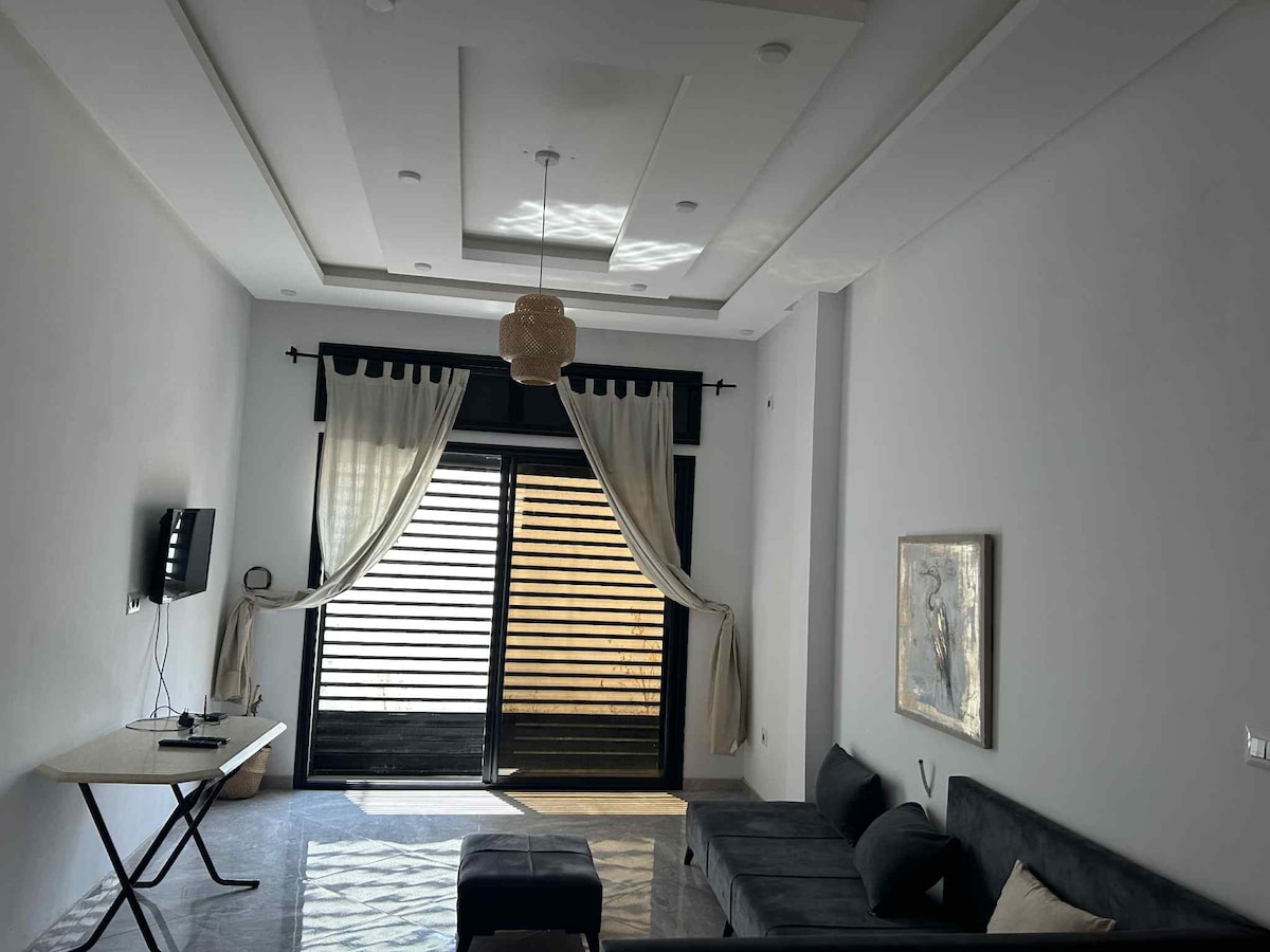 EL Bhira Bizerte'de ferah bir üst kat daire kiralayın Şununla: - 1 yatak odası. - 1 oturma odası. - Mutfak - 2 duşlu 2 banyo. - Barbekülü 2 teras. - TV. - ÜCRETSİZ WİFİ - Xbox - Şehir merkezine ve plaja (Corniche) arabayla 5 dakika mesafede. - Sakin Alan - Güvenlik kamerası altında ücretsiz otopark CCTV - Yüzme havuzu. - Netflix