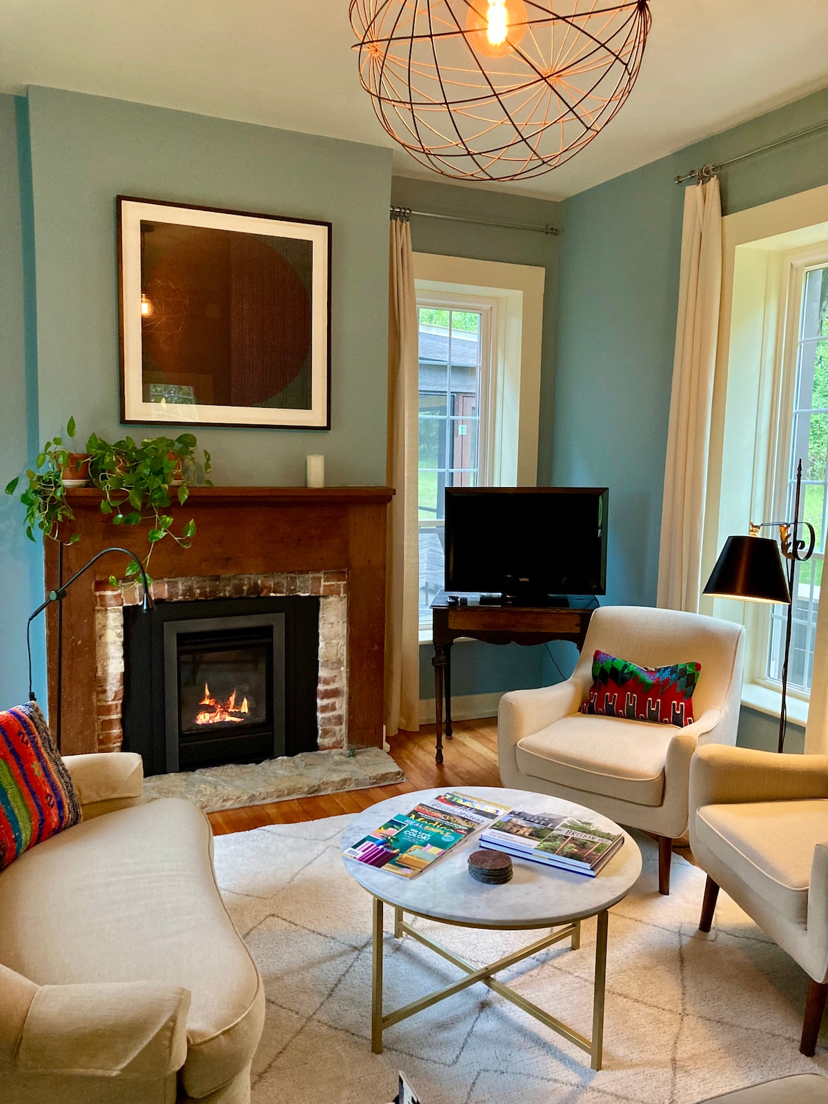 Yaratıcı ruhlar, yüksek tavanlara, sürgülü cam kapılardan oluşan bir duvara, küçük mutfağa, piyanoya ve pitoresk bir ahır, mera ve ağaçlık tepelerin geniş manzarasına sahip keyifli bir tek odalı çatı katı tarzı bir alan olan muhteşem stüdyo inzivamı seviyor. Bu harika, ısıtmalı, ferah kır kaçamağında sıhhi tesisat yoktur; ana evin misafir banyosuna avludan sadece birkaç adım mesafededir. Gelin, burada yaratın, rahatlayın ve yenilenin! Rezervasyonunuza dahil olan iyi huylu köpekler dışarıdayken tasmalı olmalıdır.