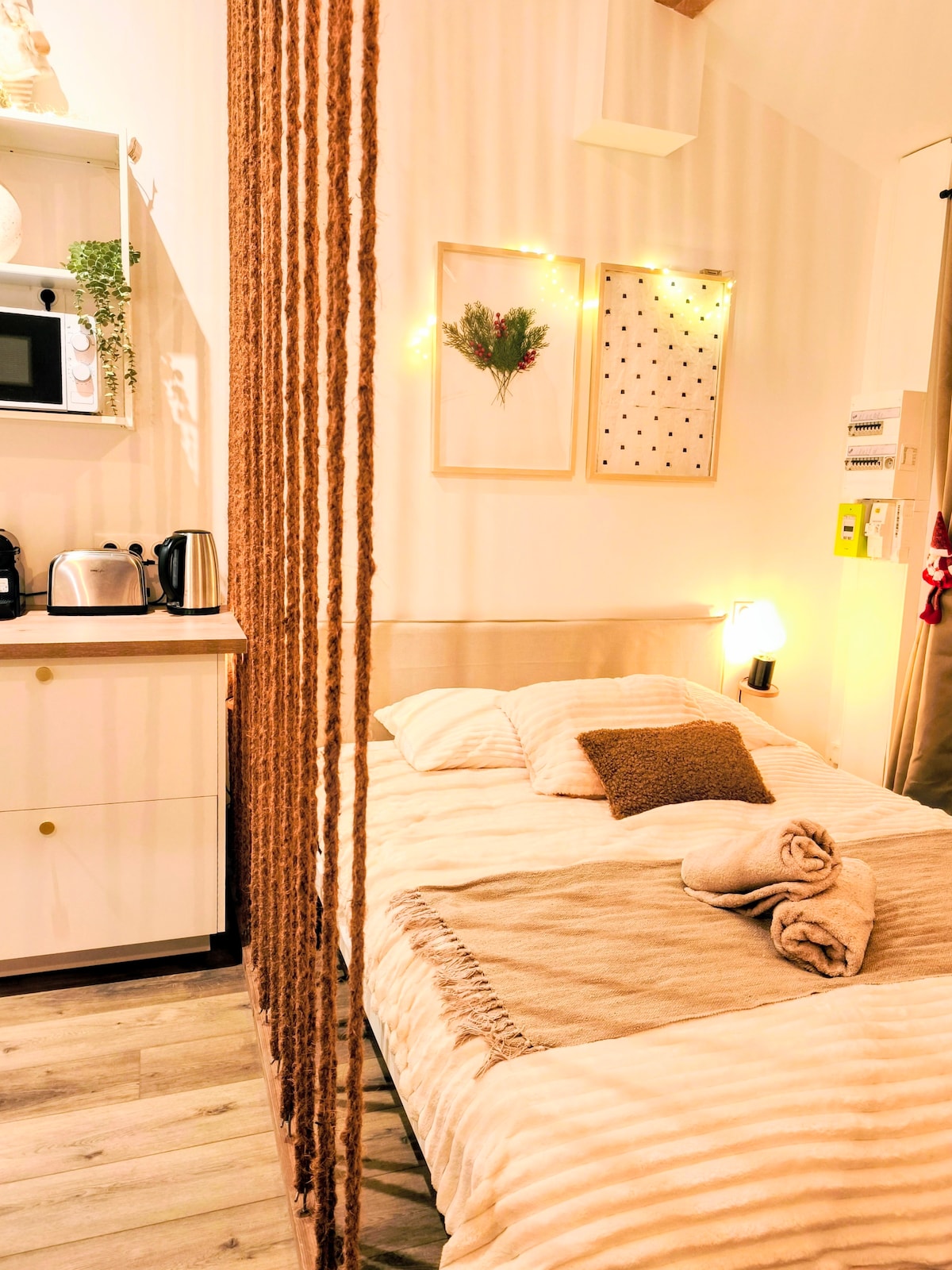 Yaklaşık 65 m2'lik bu dairede kendinizi evinizde hissederek harika bir konaklama geçirin! Komple ekipman (wifi, bulaşık makinesi, çamaşır makinesi, donanımlı mutfak, su ısıtıcısı, dolce gusto…) İster tatil için ister iş için gelin, rahatlayabilirsiniz, her yere yürüyerek ulaşılabilir (küçük dükkanlar, barlar, restoranlar, sinema, kale, liman...) İki tek kişilik yatağı birleştirerek ek bir çift kişilik yatak yapma imkanı.