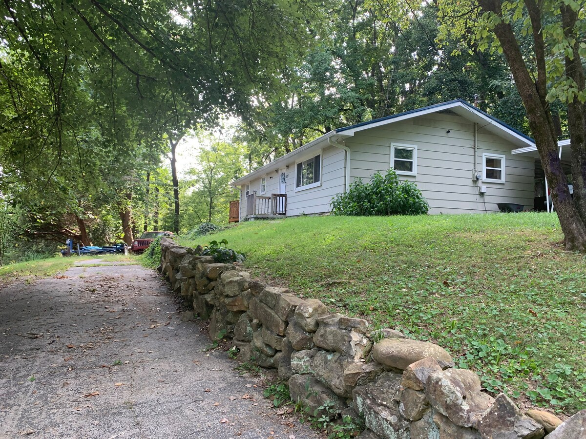 Kamyon ve tekne römorku için özel garaj yolu ile kendi küçük mutfağı ve banyosu olan özel girişli, bitişik, stüdyo daire/verimlilik ile Chickamauga Gölü'nde özel bir iskelenin tadını çıkarın. Tuft & Needle yataklar. Balık tutmayı sevenler veya su ve açık havayı sevenler veya romantik bir kaçamak için mükemmeldir. Pocket Wilderness, Hell's Kitchen veya Dogwood Boulders'daki harika kaya tırmanışına arabayla kısa bir mesafededir. Chickamauga Gölü mevsimliktir; tekneler Nisan ortası - Ekim ayları arasında iskeleyi kullanabilir.