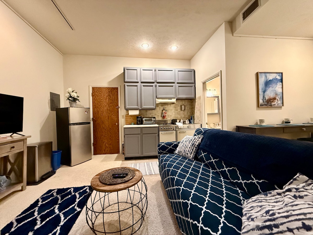 Courthouse Loft, 1900'lerin ortalarında kullanılan tarihi adliyede, City House'un ikinci katında bulunmaktadır. Mahkeme salonunun orijinal korkuluğu ve kapısı, 825 yumuşak stüdyo tarzı düzeni ayırır. Çatı katında ayrı bir banyo ve çamaşırhane ve jakuzili bir veranda bulunmaktadır! Yüzyıl ortası ve tarihi tarz, konaklamanız sırasında sizi konfor ve lüksle saracak. Bir kahve dükkanının üstündeyiz, bu yüzden kahvaltı ve sabah kahveniz için aşağı inin! Bir de temizlik ücreti yok!