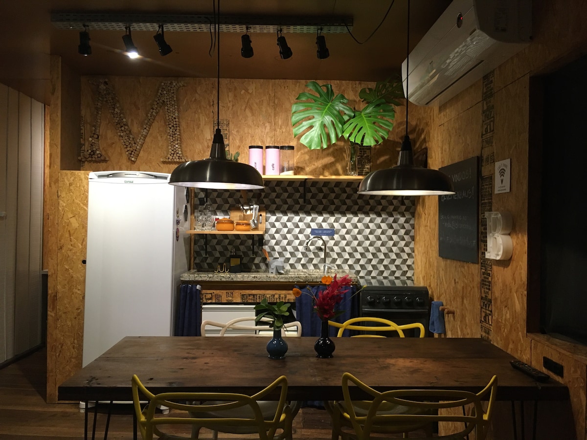Bluemenhaus'ta kendinizi evinizde hissedin! Artık özel oyun alanı, tırmanma, jeodezik kubbe ve kaydırak ile. Sevgili oma (Almanca büyükannem) evimiz, arkadaş gruplarını ve tüm aileleri ağırlamak için tamamen yenilendi. Evimiz Vila Germânica'ya sadece 14 dakikalık yürüme mesafesinde, park yeri veya birkaç bira sonra eve nasıl döneceğiniz konusunda endişelenmeden partinin tadını çıkarın! Mekanımızda 10 kişiyi rahatça ağırlayabileceğiniz entegre mutfak ve oturma odası bulunmaktadır!