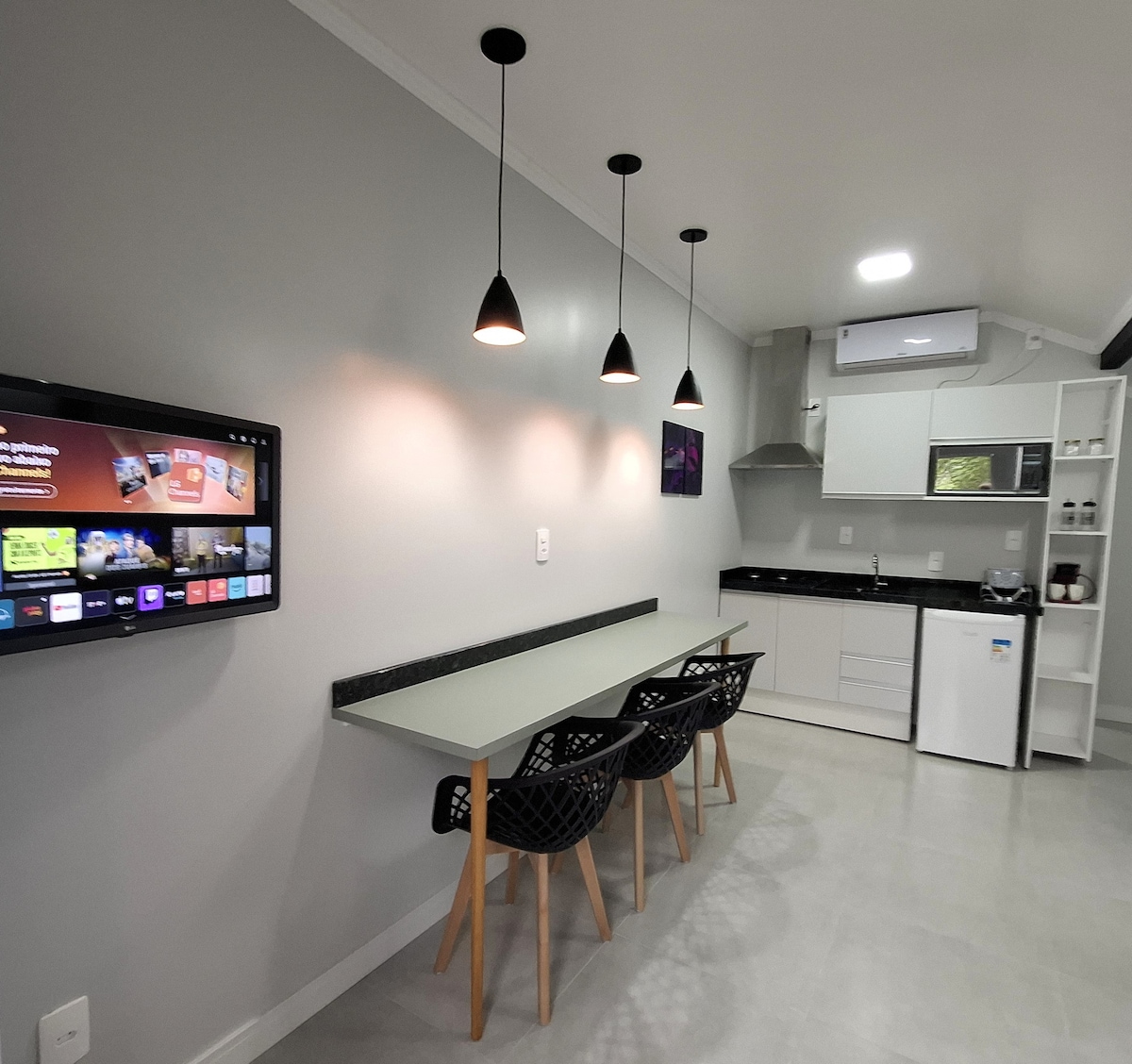Sofisticado apartamento studio localizado a 800m do parque Vila Germânica - local de eventos como a Oktoberfest. Rodeado por restaurantes, bares e supermercados. Tudo para o seu conforto: Smart TV 50" Samsung, ar condicionado split, chuveiro a gás, wifi fibra 240mb, cozinha completa com geladeira Brastemp, microondas, forno, fogão, coifa, cafeteira, purificador de água, lava e seca, guarda-roupas, e é claro uma cama queen convidativa com o melhor colchão!