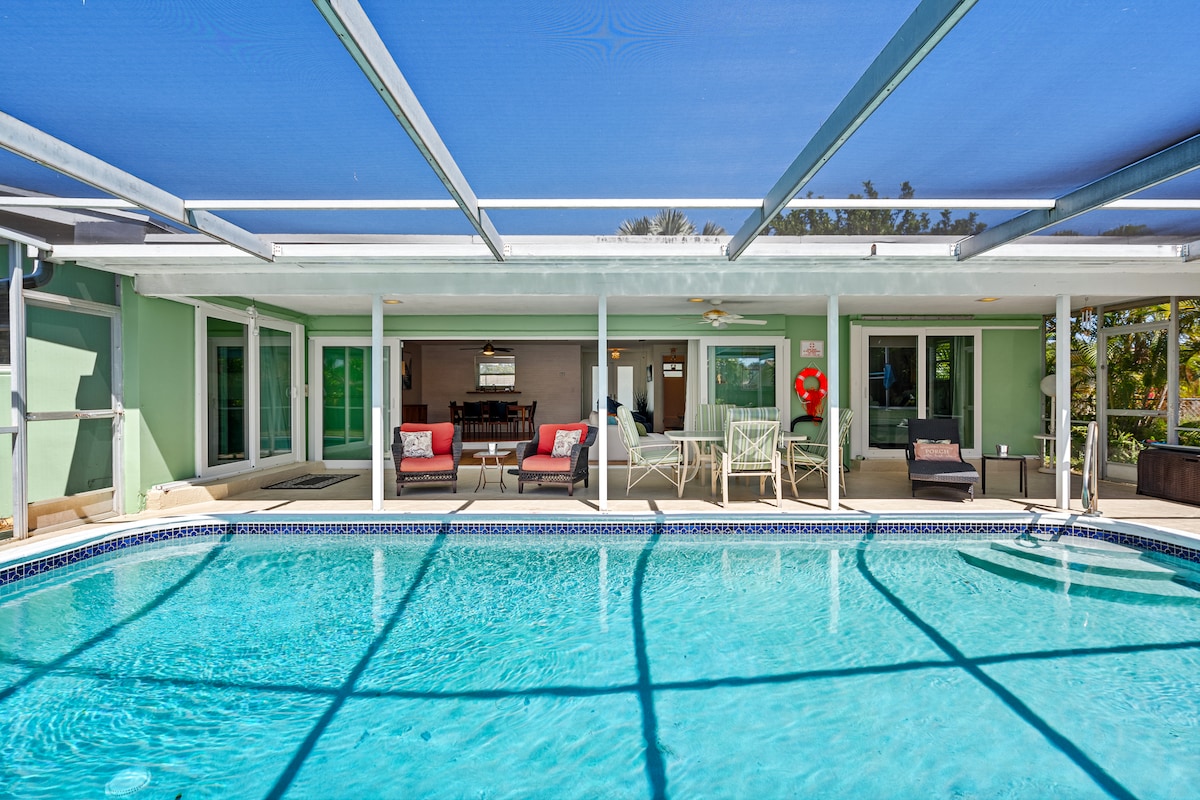 Halka açık plaja iki blok mesafede! Deerfield Beach'in göbeğinde tamamen yenilenmiş sahil modern rüya tatil evi! Geniş özel/çitle çevrili arka bahçe, geniş yeşil alan ve ızgara, çamaşır makinesi-kurutucu ile tonlarca alan: hepsi kişisel ve özel kullanımınız için. Halk plajına, iskeleye, tahta kaldırıma, gece hayatına ve harika restoranlara iki blok yürüyüş mesafesinde. Sörf, tekne, balık, okyanusta yüzme. İki lüks ve temiz yatak odası ve iki banyo, + çekyatlı queen boy yatak. Parlak kış bahçesi yemek alanı. Bonus olarak masa tenisi oyun odası!