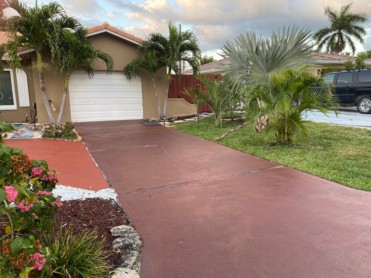 Gelin ve kendi stüdyonuzun mahremiyetiyle yerel bir deneyim yaşayın! Sessiz, aile merkezli semtte tamamen yenilenmiş misafir süiti. Her şey yepyeni, lüks şelale duş, konforlu kral yatak, akıllı TV (kablolu değil), mini buzdolabı, mikrodalga fırın, lavabo, elektrikli ocak, elektrikli ızgara ve kendi çamaşır makineniz ve kurutucunuz! Özel açık alan! Ev sahipleri Deerfield Beach yerlileridir ve ihtiyacınız olan her konuda size yardımcı olmak için hemen yanınızdadır!