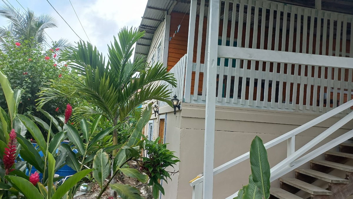 Bastimentos Körfezi'nin özel bölgesinde yer almaktadır. Büyük orman alanı, esinti, ışık, geniş deniz manzarası. Güzel bir resifi görebileceğiniz ve şnorkelle dalış, kano, yüzme, güneşlenme yapabileceğiniz özel iskele. WiFi, açık mutfak. Kendine yeten... güneş panelleri ve yağmur suyu enerjisi, geri dönüşüm Evin dekorasyonu, sahibinin sanatsal çalışmasını, deniz camı parçaları veya deniz kristalleri, ahşap, renk ile gösteriyor!