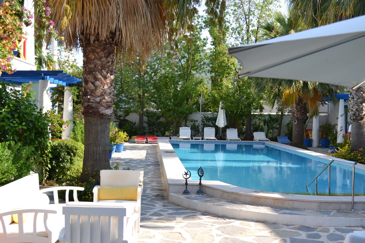 At the Heart/Center of the Marina Bodrum, easily access all Fancy Restaurants and other Pubs also the Shopping places. 10-15 min walk to the nearest beach clubs or public beach. Next to our Hotel there is a Parking Lot (Not Owned by us/with fee) Our rooms have all private bathrooms, air conditioner, clean sheets and surroundings. Bu büyüleyici konaklama yerinden popüler mağazalara ve restoranlara kolayca erişmenin keyfini çıkarın.10 dk yürüyüş mesafesinde ücretli-ücretsiz deniz keyfini çıkarın