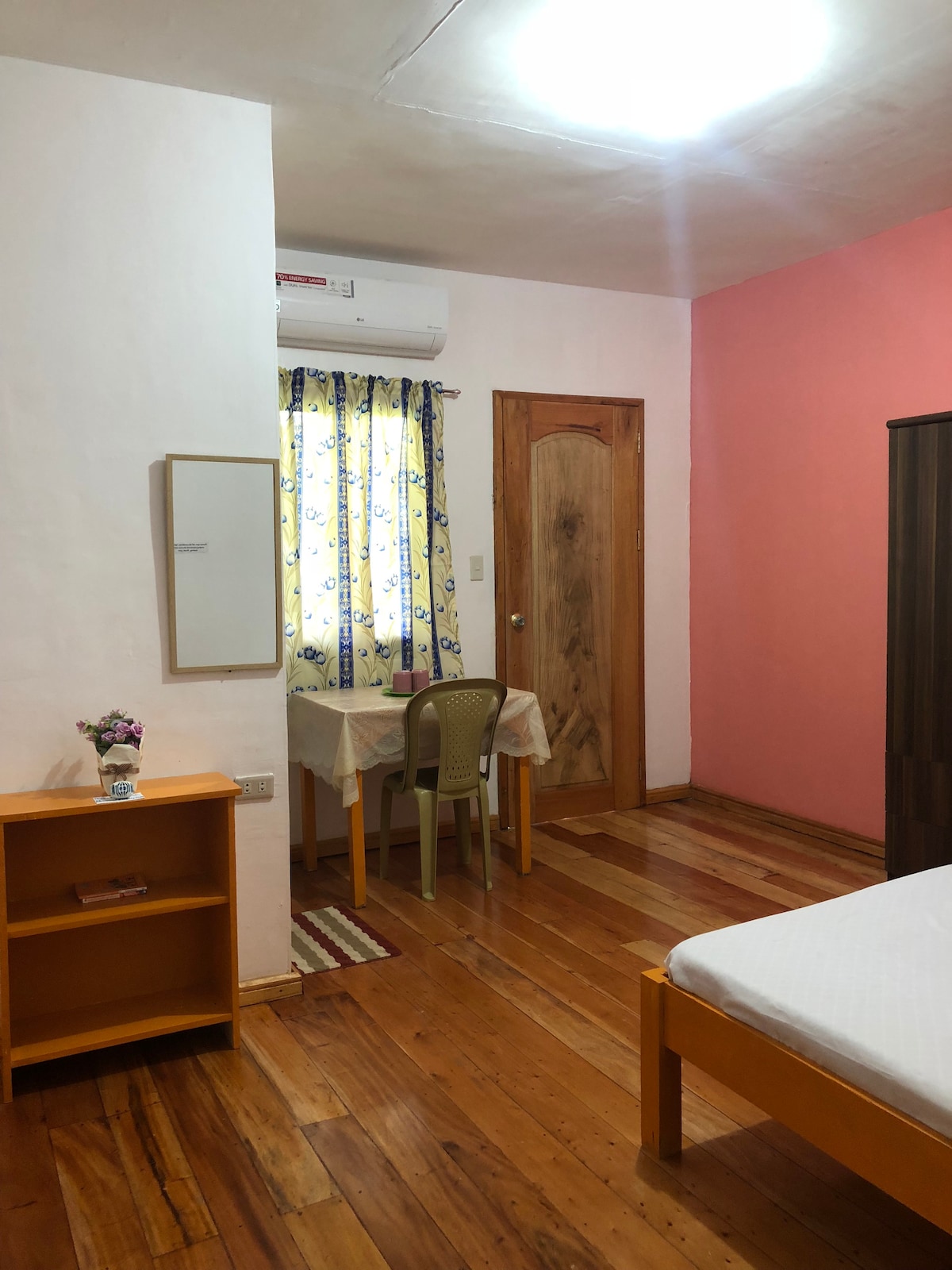 Bu şık konaklama yeri, Bohol'un güney sahilinde seyahat ederken dinlenmek ve rahatlamak için tek bir kişi, çift veya dört kişilik bir aile için mükemmeldir. Bohol'daki Valencia kasabasından 1, 2 km uzaklıktaki Adlawan adlı küçük bir barangay'da yer alıyor. Klima, buzdolabı, kablosuz internet bağlantısı, Netflix, YouTube vb. bulunan 42 inç akıllı TV ile donatılmıştır. İçeride büyük bir süper king boy yatak (78"x78") ve kaliteli ikiz boy çekyat bulunmaktadır. Ayrıca bir yemek masası/4 sandalye. Yağmur ve ısıtmalı güçlü duş.