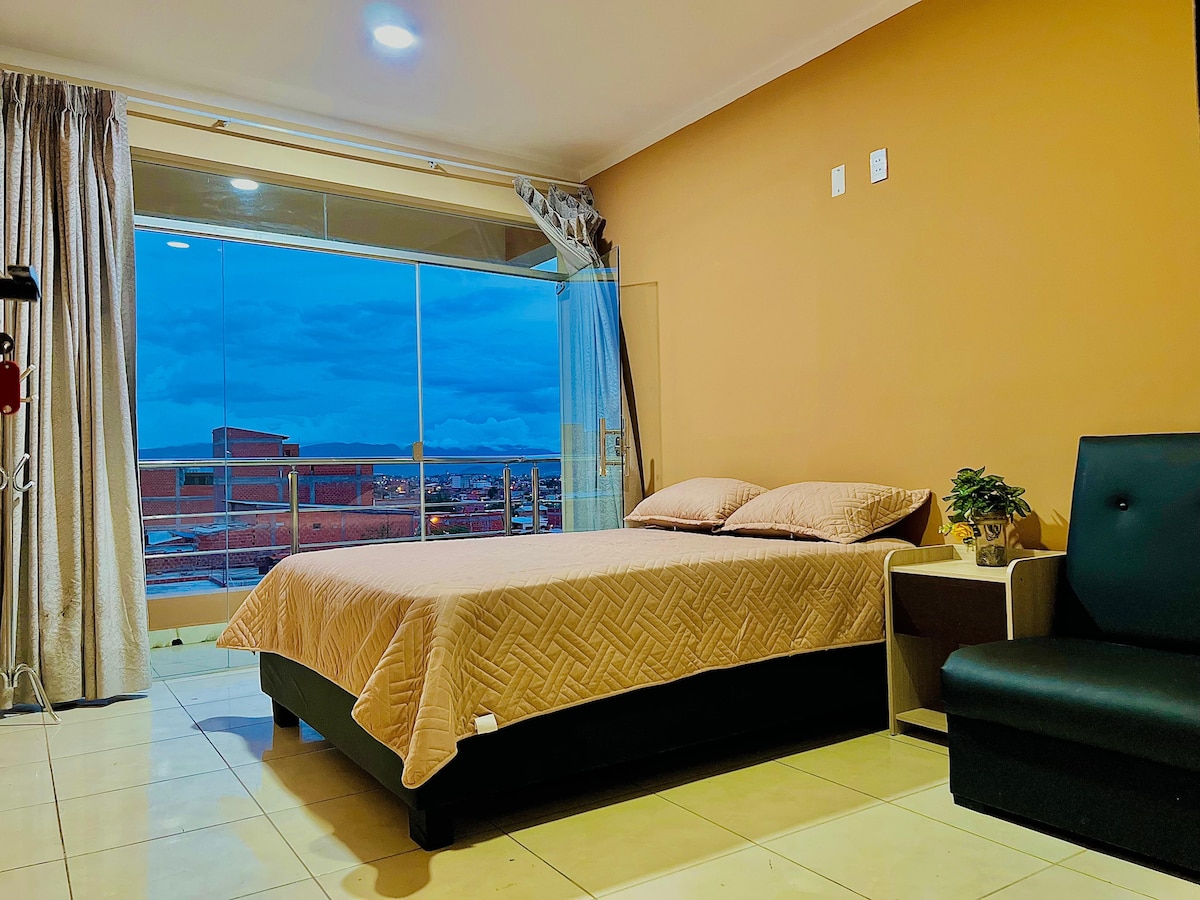 Disfruta la comodidad de una habitación de hotel en el exclusivo Hupermall, en el corazón de Cochabamba. Con acceso directo a tiendas, cine, gimnasio y una variada plaza de comida, estarás rodeado del mejor ambiente de la ciudad. A pocos pasos, descubre cafés y restaurantes para cada gusto. Ideal para quienes buscan confort y conveniencia en la mejor ubicación de Cochabamba. Servicio disponibles por un costo adicional: * Desayuno 70 Bs/día * Limpieza extra 50 bs/limpieza * Parqueo 25 bs/día