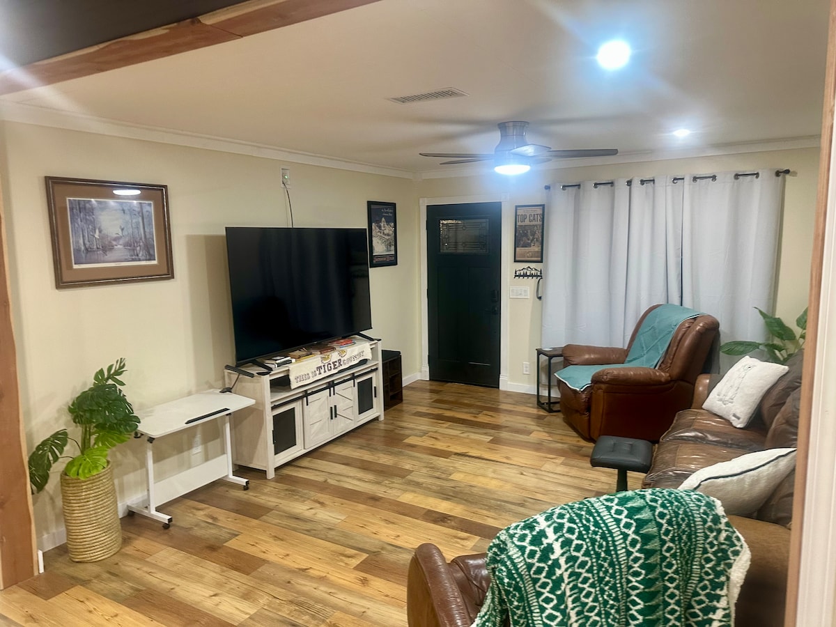 This newly renovated 2000 sq ft home is perfect for a vacation getaway . Guests can lounge by the large brick fireplace with a cup of coffee (from our specialty coffee bar), or head to the back patio to toast smores by the firepit. It sits on a corner lot with mature pecan trees and features a fabulous open concept kitchen/living area. It's 5 blocks from Shreveport’s most upscale shopping /restaurants-2 miles from Brookshires Arena. Great for family trip/business trip/weddings guests-