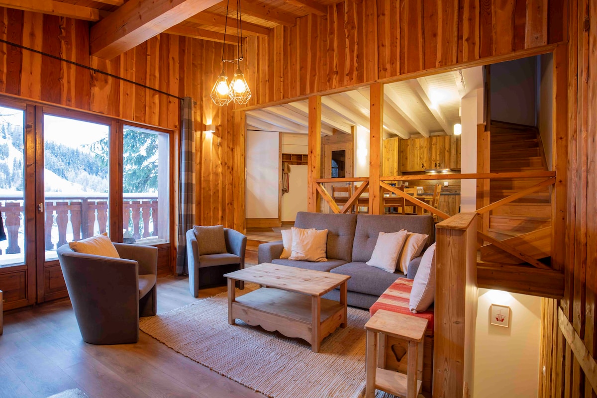140m2'lik dağ evi, 45 m2'lik terasından Champagny le haut vadisi ve Pralognan vadisi üzerinde nefes kesici bir manzaraya sahiptir. Domaine de la Plagne'da güzel bir kayak gününden veya ünlü Parc de la Vanoise'da bir gün boyu yürüyüşten sonra Sauna'nın ve muhteşem terasın şöminesinin tadını çıkarın. Avantajlarımız: - çarşaf, havlu ve temizlik dahil - elektrikli araç şarj istasyonu - teleferiklerin hemen yanında özel otopark