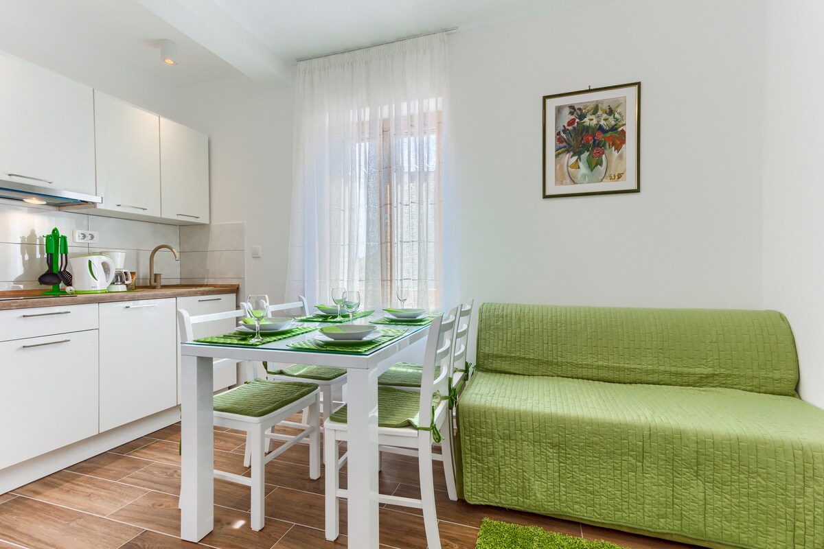 Bu daire müsait değilse profilimdeki diğer dairemi kontrol edin. Lüks daire Ranko, bir binanın birinci katında yepyeni bir dairedir. Daire, Diocletianus Sarayı'nın Altın Kapısı'na 400 metre (yürüyerek 4 dakika) uzaklıkta, Split'in merkezinde bulunmaktadır. Şehrin ortasında mükemmel bir konuma sahip olan bu lüks daire ihtiyacınız olan her şeye sahiptir. Daire 38 m2 'dir, çift kişilik yataklı bir odaya, duşlu ve çamaşır makineli banyoya, bulaşık makineli tam donanımlı mutfağa sahiptir.
