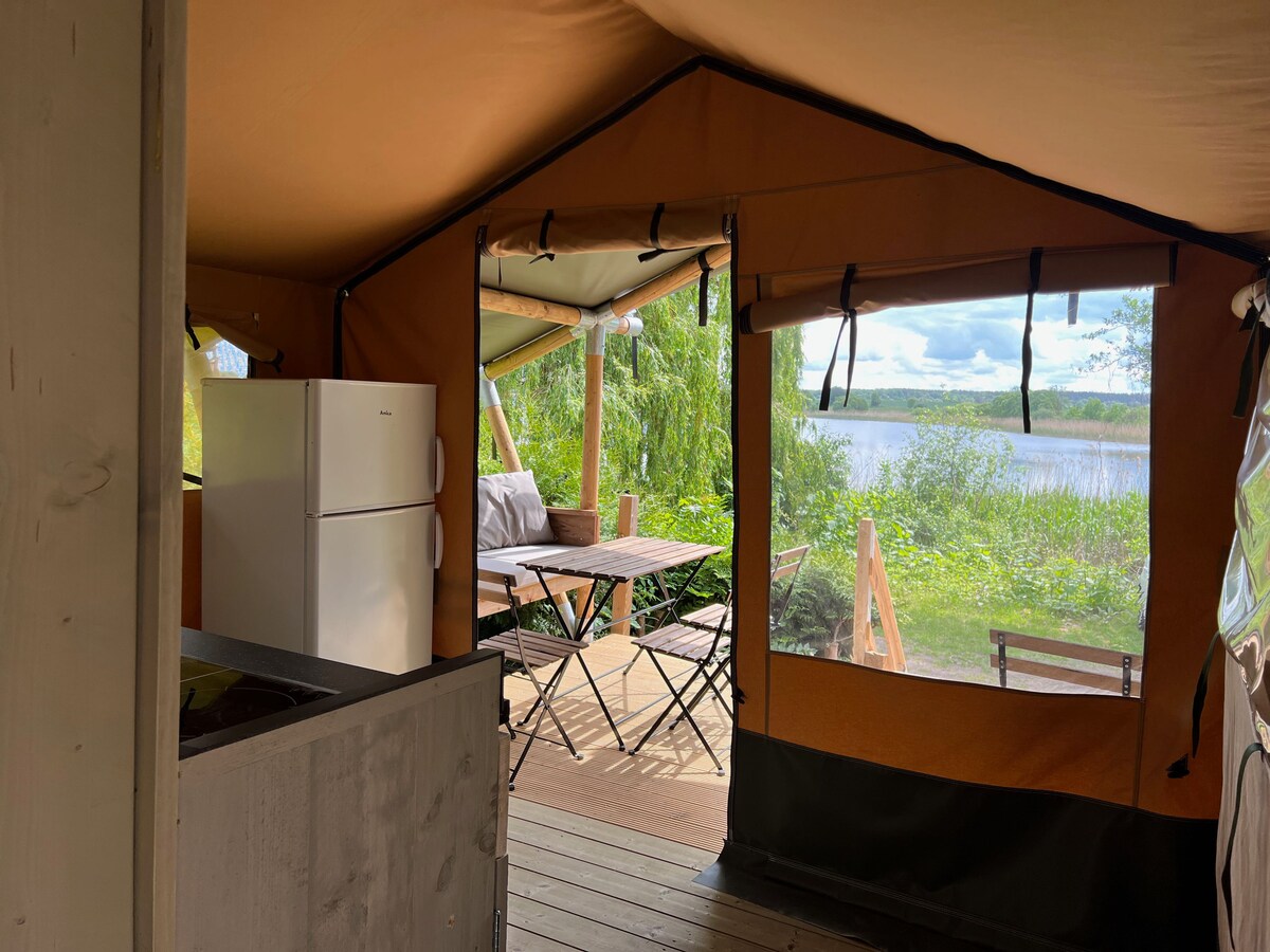 Mecklenburg Gölü Bölgesi'nin ortasındaki Küçük Wanzka Gölü'nün kıyısında yaklaşık 30 metrekarelik bu lüks çadır bulunmaktadır. Kira fiyatına özel bir iskeleye ve en fazla 4 kişilik küçük bir balıkçı teknesine erişim dahildir. Mekan, doğaya büyük yakınlığı ve rahat atmosferi ile karakterize edilmiştir. Biraz yüksekteki kapalı terastan güneş ve yağmurdan korunan harika bir göl manzarasının tadını çıkarabilirsiniz.