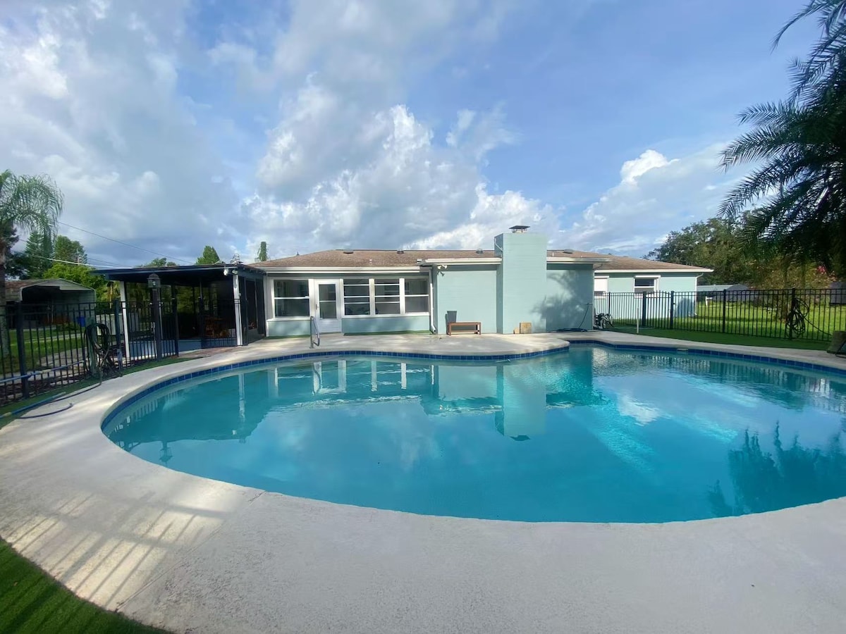 Enjoy a relaxing stay in this lakefront 4-bedroom home. - Spacious interior with open living areas - Screened-in private pool and patio - Family-friendly amenities including games and toys - Beautiful lake views, perfect for morning coffee - Pool table for indoor entertainment - Easy access to shopping, dining, and Tampa Families are well accommodated with books, games, toys, pack n play, and a high chair, making this an easy and enjoyable stay for guests of all ages.