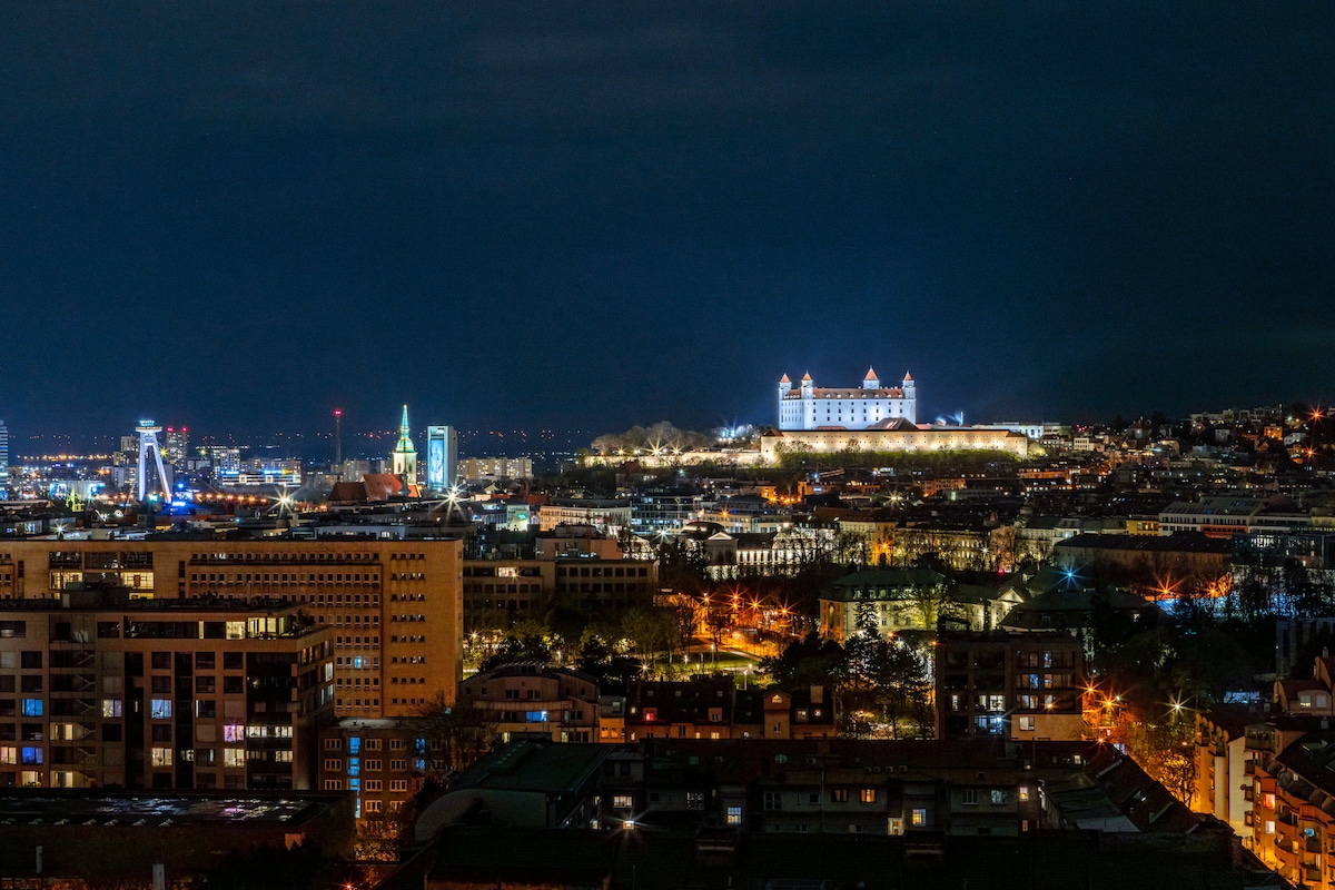 Bratislava'ya bakan tasarım daire, Bratislava'nın merkezine mükemmel (yaya) erişimi olan huzur, tarz sunar. Yeraltı park yeri var. Semtte üretim olanakları var. Doğrudan mekânda gatro operasyonları, yemek ve spor tesisleri bulunmaktadır. Daire çamaşır makinesi, kurutma makinesi, duş ve kahve makinesi ile tam donanımlı mutfak ile donatılmıştır. Akşamları, harika bir Bratislava manzarasına sahip geniş terasta bir kadeh şarabın tadını çıkarabilirsiniz.