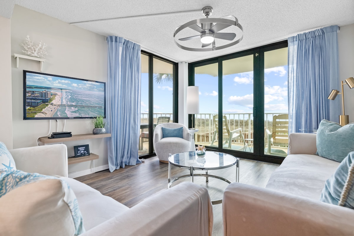 Her şeyin basit ve konforlu hissettirdiği aydınlık, modern bir okyanus kıyısı inzivası. Açık manzaranın, temiz tasarımın ve deniz kenarında yavaşlamak için yapılmış rahat bir alanın keyfini çıkarın. Myrtle Beach'te en yüksek puanlı %5 🌴 Okyanus Kıyısında Lüks - Seawatch Resort 1003 Kuzey Kulesi • 🌊 Plajı ön planda ve merkezde hissettiren yerden tavana okyanus manzarası • 🛋 Açık, sade ve konforlu hissettirmek için tasarlanmış aydınlık, modern yaşam alanı • 🛏 Dinlendirici geceler için rahat bir king boy yataklı özel yatak odası • 🍳 Tam donanımlı