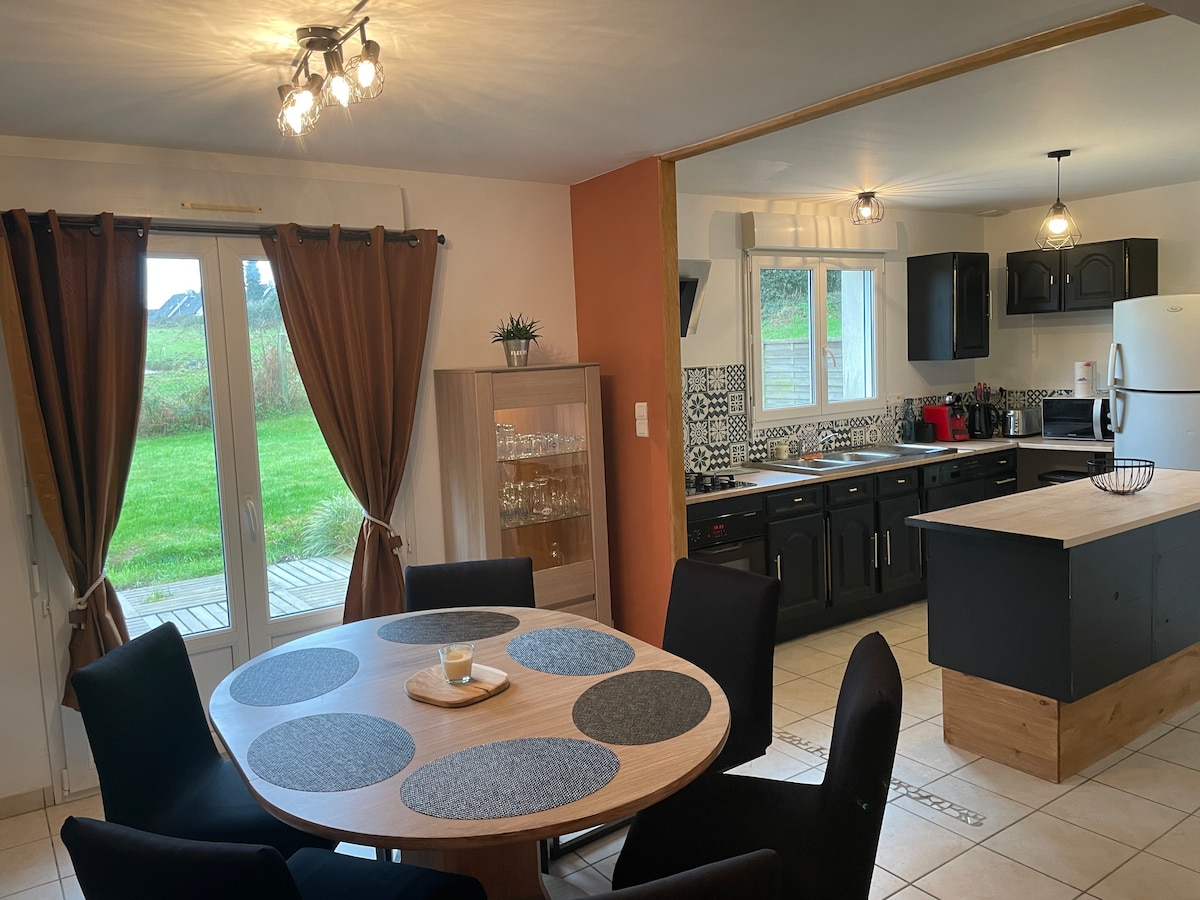 ⸻ Doğanın göbeğinde dinlenmek için ideal, sessiz bir aile kır evi. Geniş güvenli bahçe, petank kortu, araba garajı,motosikletler , bisikletler/bebek arabaları. Çocuklu aileler için mükemmel: alan, huzur ve yakındaki plajlar. Cotentin'de, deniz ve kırsal alan arasında dostça bir konaklamanın keyfini çıkarın.