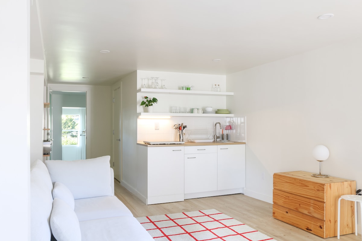 Bernal Heights'taki uykulu bir blokta yer alan bu yakın zamanda yenilenmiş (202023 ortası) stüdyodan dinlendirici yeşil manzaraya uyanın. Buda heykeli ve modernist esintili avlusu olan huzurlu bir arka bahçe, yatak odası, küçük mutfak ve banyonun yanında yer almaktadır. Bloğumda ve çevredeki sokaklarda ücretsiz sokak park yeri (paralel) mevcuttur, kısıtlı değildir ve genellikle kolayca ulaşılabilir. Müstakil stüdyonun üst kattaki ana evle ortak bir ön kapı ve antre paylaştığını unutmayın.
