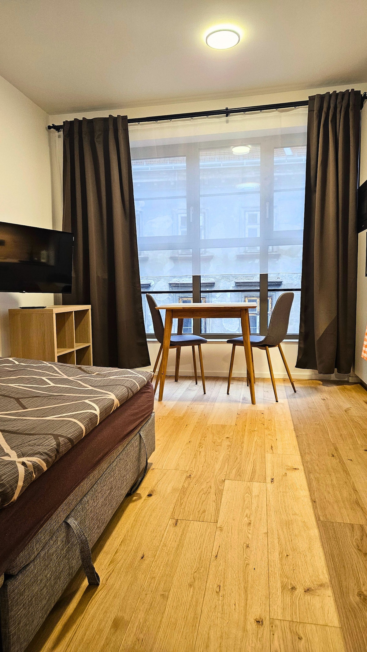 Benzersiz Pekárenský Dvůr Residence içinde yer alan şık ve çağdaş bir daire olan The Bakery Studio N°405'e hoş geldiniz. Bu modern gelişme, Brno'daki en yenilikçi gelişmelerden biridir ve misafirlere sadece konforlu bir yaşam değil, aynı zamanda büyüleyici bir ortam da sunar. Ne beklemelisiniz? - Tam donanımlı mutfak ve banyosu olan aydınlık, modern mobilyalı daire. - Kompleks içinde spor salonuna erişim - Kompleks içinde saunaya erişim. - Yüksek hızlı kablosuz internet bağlantısı. - Netflix. - Nespresso kahve :)