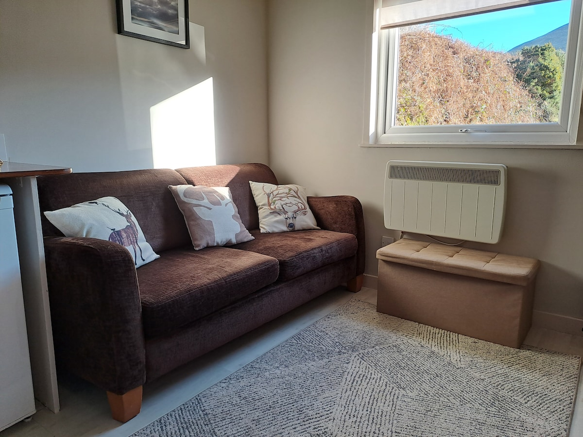 İkiz yataklı yatak odası, oturma alanı, kahvaltı alanı ve duş. Lochranza Koyu'nun muhteşem manzaraları. Lütfen 0,3 mil yukarıda engebeli bir tepe yolu olduğunu, park yerinin yolun eteklerinde olduğunu unutmayın. Arran Coastal Way ve Lochranza - Claonaig feribotuna yakın. Otobüs durağı 0,8 mil. Mini buzdolabı, mikrodalga fırın, fişli tekli ocak, su ısıtıcısı, ekmek kızartma makinesi. Kahvaltı verilir; tahıllar, çay, öğütülmüş kahve, ekmek, tereyağı, süt, konserveler. Önceden talep edilirse glütensiz/vegan. Sahiplerin evine ve sanatçının stüdyosuna bağlı. Yardım/tavsiye için yan taraftayız.