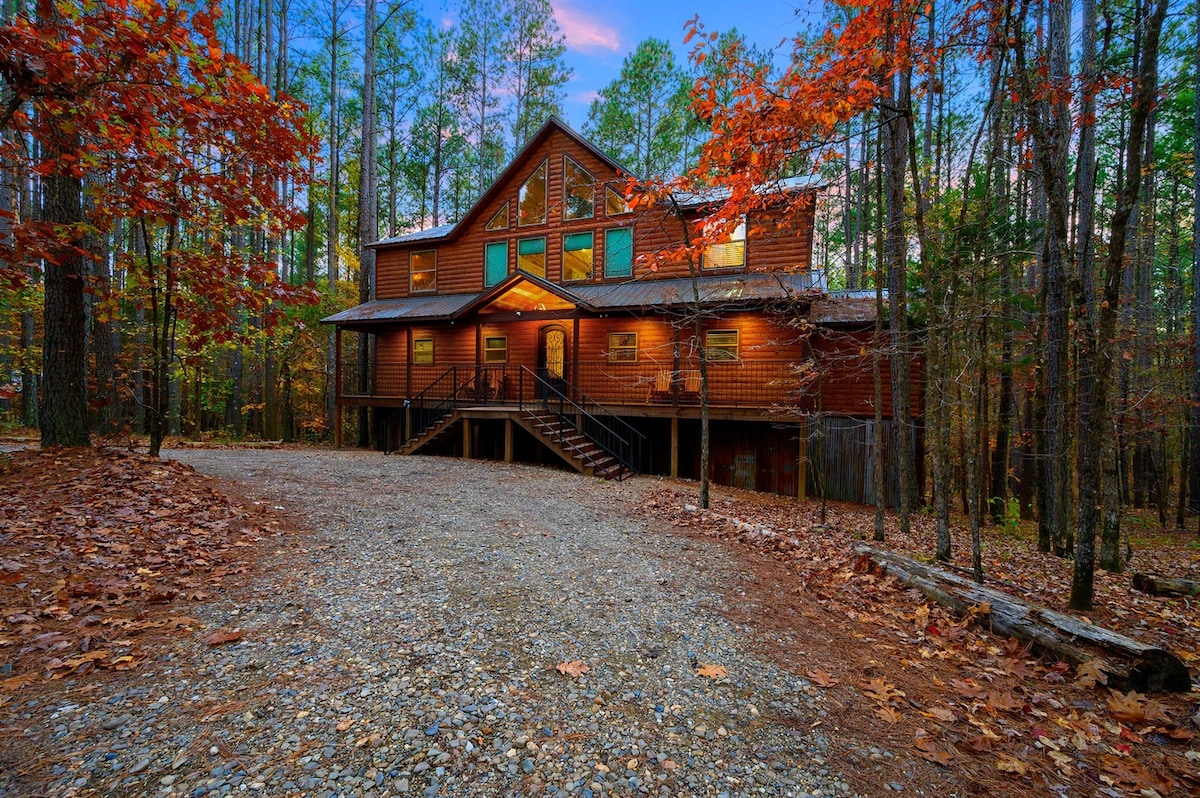 Escape to Starry Escape, a luxurious cabin nestled in the pines with stunning views. ☀️ Spacious wrap‑around deck with serene forest views 🍖 Built‑in outdoor grill ♨️ Relaxing hot tub nestled among the trees 🔥 Cozy outdoor fireplace and fire pit perfect for gathering 📍 3‑minute drive to local shops and restaurants ✭ "A great stay for families. Lots of space for children and peaceful mornings watching deers with a cup of coffee..."