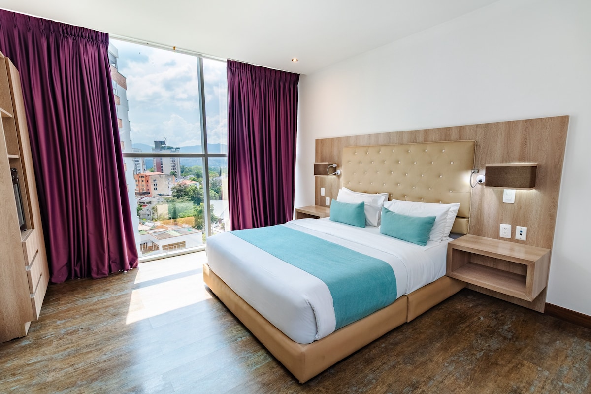Bu güzel konaklama yerinden popüler mağazalara ve restoranlara kolay erişimin keyfini çıkarın. 5 blok içinde 3 alışveriş merkezimiz, Bucaramanga'daki en büyük rumba bölgemiz ve Crepes & Wafles gibi restoranlarımız var.