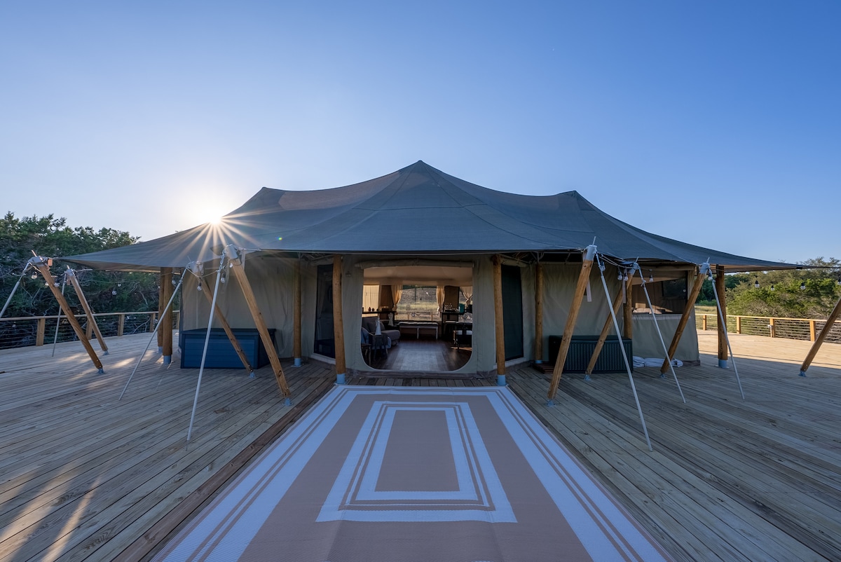 Glamping under the Stars + Pool * Strict - NO Pets These canvas wall tents have been designed to offer you everything you need during your stay. Each tent is fully plumbed, private bathroom/shower, hot water, kitchenette, AC and HEAT unit plus a wood burning stove. There are only two tents with a shared cowboy cauldron fire pit. Texas night skies and plenty of stars ✨⛺️. Created for adventure and connection. If you are wanting to rent both tents, just send me a message.