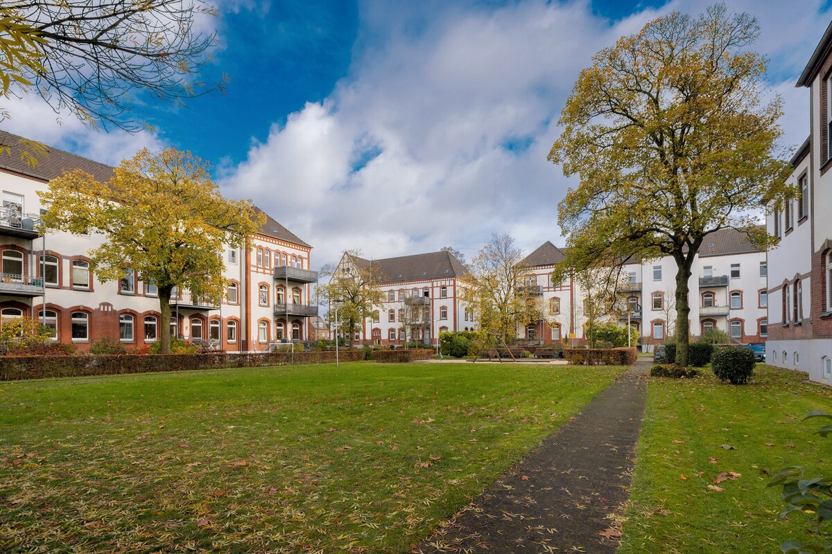Wesel'deki geniş ve aile dostu üç odalı dairemize hoş geldiniz! Altı kişiye kadar yetecek kadar geniş olan konforlu konaklama yerimiz, hak ettiğiniz dinlenme veya iş seyahatiniz için mükemmel bir ortam sunuyor. → 2 adet konforlu çift kişilik yatak → Ulaşım kolaylığı ve özel otopark 5. ve 6.→ misafir için çekyat → Waipu TV + akış seçeneği sunan akıllı TV → Mutfak Tren istasyonu, restoranlar ve mağazalar→ yürüme mesafesinde Sizi görmek için sabırsızlanıyoruz!