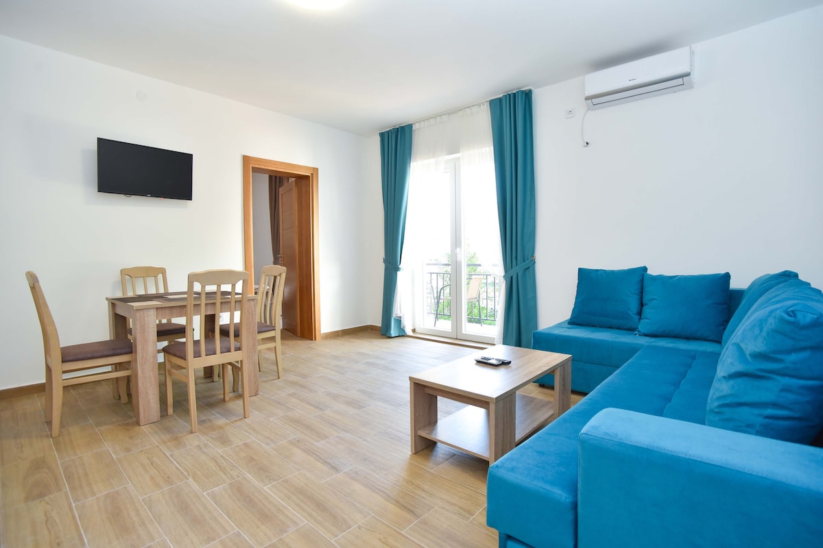 Becici Plajı yakınında deniz manzaralı rahat daire