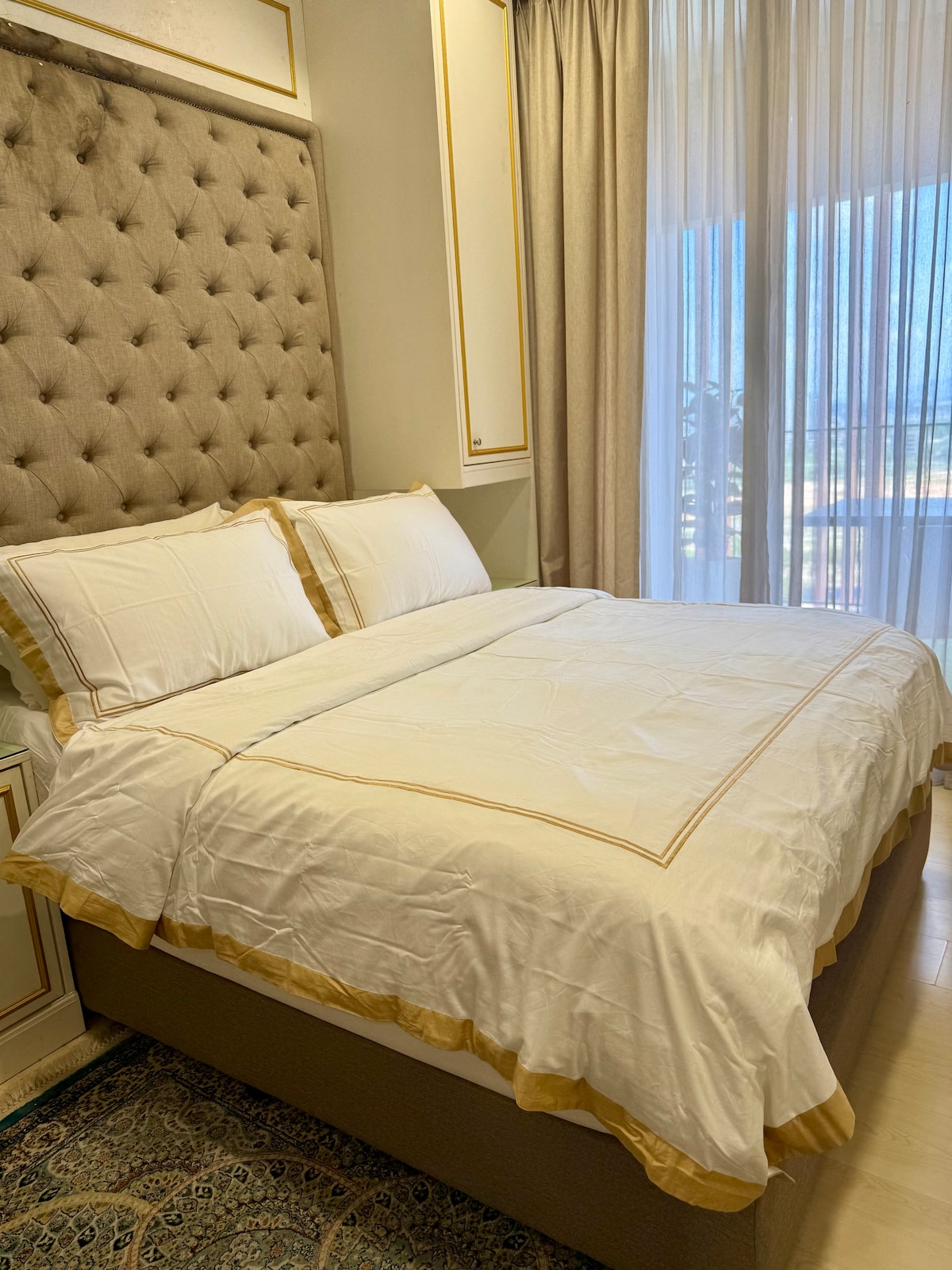 Ayrıcalıklı, bakımlı bir daire. Yepyeni ve çok davetkar. Ev hissi veriyor. Mobilyaları tamamen mobilyalı, dekoru ve aydınlatması güzel. Sadece fazla kartlarla çok sıkı güvenlik. Çatıda sonsuzluk havuzu. 2 kapalı otopark teklif edildi. Ücretsiz Kahve/Çay verilir. Kilitli ayakkabı dolabı ile birlikte sunulur.