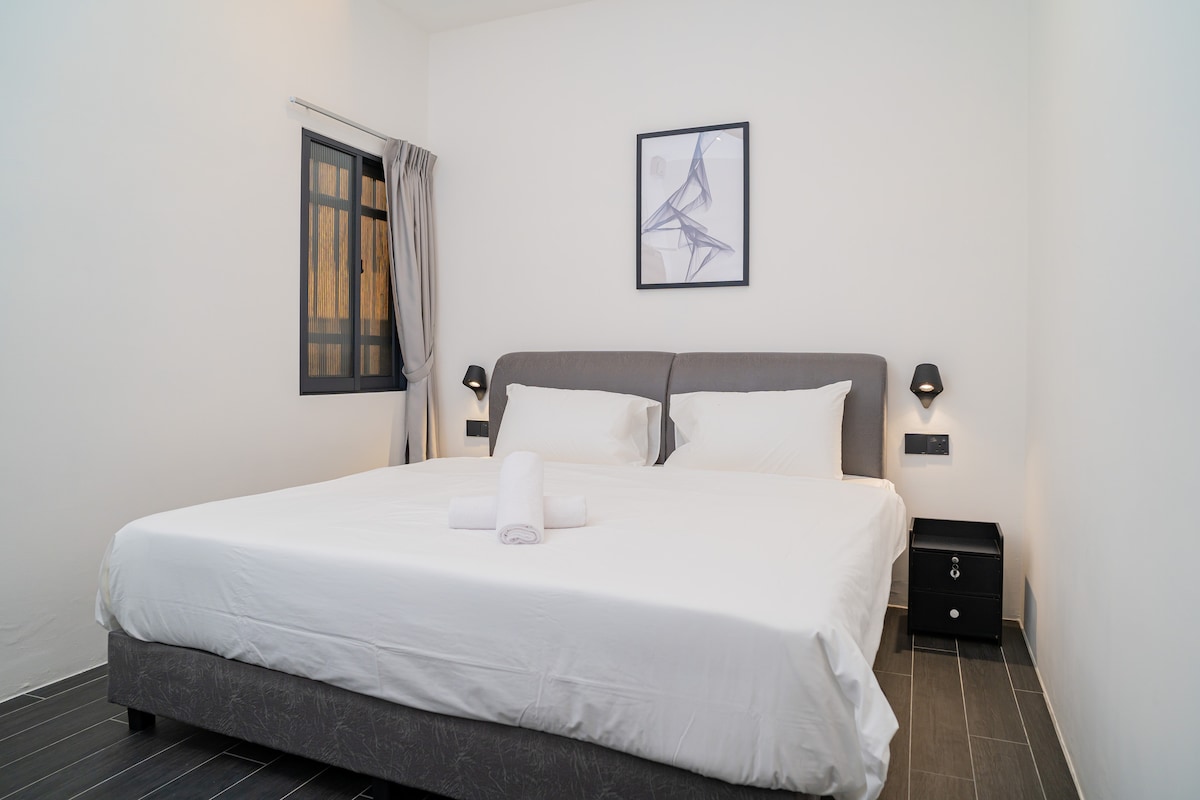 Oda, ziyaretçilerin Penang Uluslararası Havaalanı'ndan Carnarvon House'a rahat bir alana sahip olabilmeleri için sade ve sade bir konseptle tasarlanmıştır (Mesafe 20 km'dir) 1. Taksiyle: Trafik olmadan 30 dakika, yaklaşık RM40/taksi