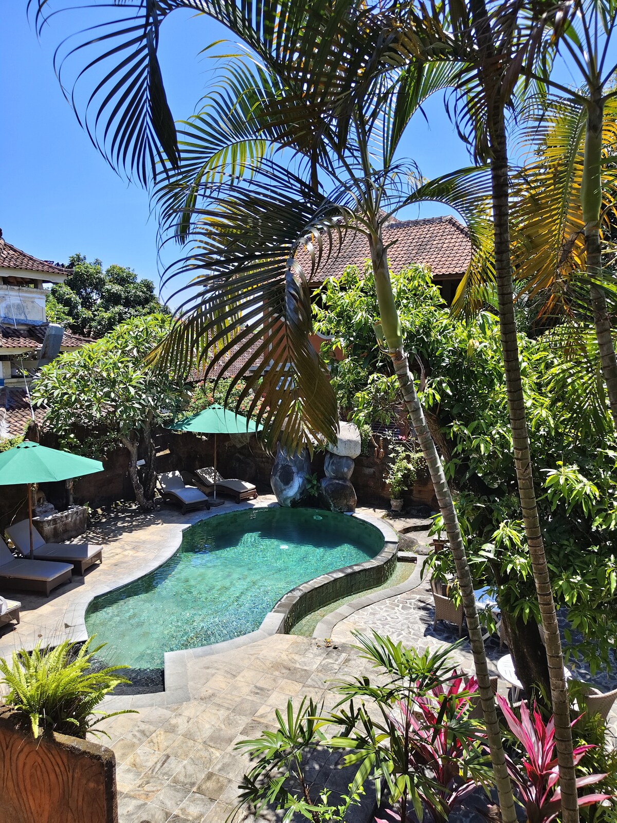 Okyanus manzaralı, sessiz ve güneşli bir yer. Bahçe, denizi çevreleyen çiçekler, kelebekler ve hindistan cevizi palmiyeleriyle doludur. Dalış ve şnorkelle dalış için idealdir. Bozulmamış mercan kayalıkları hemen sahilimizde. Bir Hindu Bali balıkçı köyüne yakın. Lezzetli ve ucuz yemeklere sahip küçük bir restoran, ayrıca vejetaryenler ve veganlar için. Ücretsiz iyi wifi. Rahatlamak ve geleneksel Bali, gün doğumları, yunuslar, yoga ve meditasyon ve harika bir şelaleyi deneyimlemek için mükemmeldir.