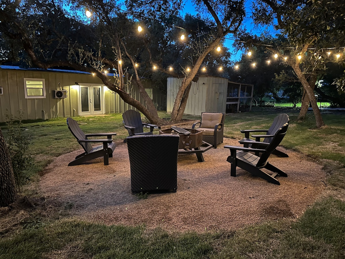 Güzel ve konforlu olan bu muhteşem kaçış yeri, Guadalupe St Park'ın bir mil güneyinde ve güzel Park 31 düğün mekanının yanında, Texas Hill Country'nin göbeğinde yer alıyor. Küçük kasabalara ve benzersiz ve çok kültürlü deneyimler, alışveriş, yemek ve eğlence sunan büyük bir şehre dakikalar mesafesindeyiz. Guadalupe River Park'a kolayca erişilebilir ve su eğlencesi, kamp ve günlük yürüyüşleri sunar. Çalışan bir at çiftliği olarak, hayvanlarımızla yakın etkileşimlerin tadını çıkaracaksınız!
