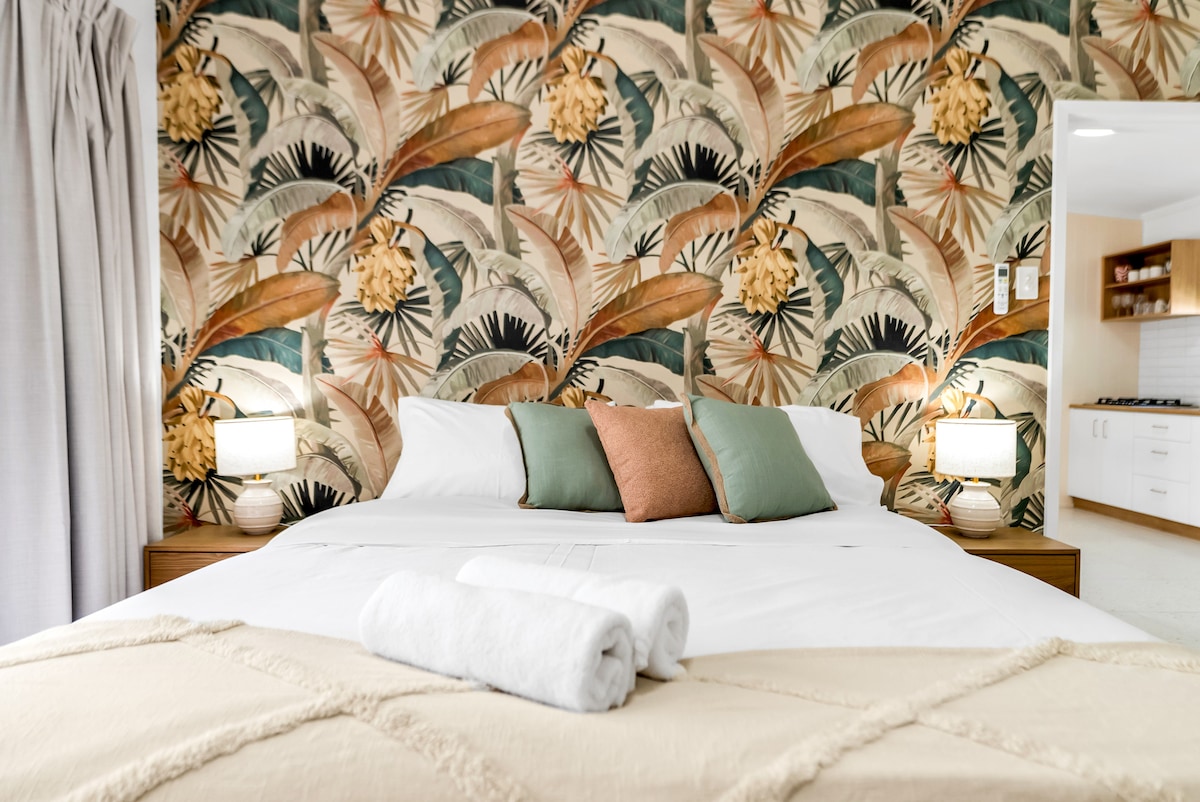 Bohemia Heights is your Cairns sanctuary, just 1.2 km from the city centre—a quick 15-minute stroll to the heart of town. This spacious apartment features two bedrooms with built-in robes, an open-plan kitchen/living area, and an on-site pool. While not a modern build, it’s full of character and charm. Comfortably accommodating four, it combines new furnishings with sustainably sourced, upcycled pieces. The cosy balcony is a standout, offering the perfect spot to relax and enjoy the local vibe.