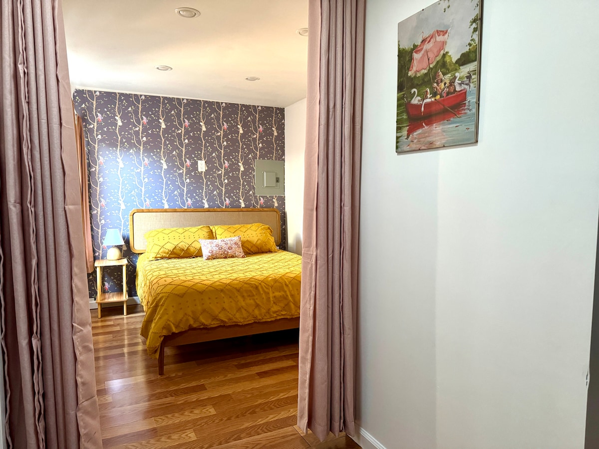 Sabah içeceğinizi ağaç evin terasında içerek güne hazırlanın, ardından küvette dinlenin veya Los Angeles'ta gezi yaptıktan sonra havadar oturma odasının tonozlu tavanlarının altında bir mola verin. Çağdaş sanat eserleri ve cesur bir yatak odası duvar resmi, şık bir mutfak ve temiz, beyaz duvarlarla kontrast oluşturuyor. Burası çok özel bir yer; geniş, aydınlık, modern ve çok özel. Sessiz bir Burbank semtinde, İspanyol tarzı evimizin arkasında yer alan müstakil bir bina. Çatı pencereli tonozlu tavan. Yağmur duşu ve derin küvetli yepyeni banyo. Geniş oturma odası ve küçük mutfak alanı ve bol depolama alanına sahip büyük bir yatak odası. Özel kablosuz internet bağlantısı ve konforlu bir ofis alanı bulunmaktadır. Ev, LA sokaklarının birazını Burbank'ın konforuna getirmek için LA sanatçılarından sanat eserleriyle doludur. Misafirlerin özel internet kablosuz internet bağlantısı, Roku TV, Netfix, Amazon ve HBO, açık hava yemek alanı barbeküsüne erişimi olacaktır. Gerekirse çamaşır ve kurutma makinesi mevcuttur. Misafir evi, ana evin arkasında bulunan, özel, anahtarsız girişi olan ayrı bir müstakil binadır. Ana evde yaşıyoruz. Sizinle tanışmayı dört gözle bekliyoruz! Sadece birkaç adım ötedeki ana evde yaşıyoruz ve bir şey olursa müsait olacağız. Büyük bir metropolün göbeğinde sessiz bir küçük kasaba hissi ile her iki dünyanın da en iyisini yaşayın. Los Angeles'ın canlı cazibe merkezleri yakındır, ancak bu ilginç semt aynı zamanda büyüleyici mağazalara ve restoranlara da ev sahipliği yapıyor. - Otobüs durağı bir blok ötede. - Kuzey Hollywood Metro istasyonu 3 mil uzaklıkta. - Universal Studios evimize arabayla 15 dakika mesafededir. - Bolca ÜCRETSİZ SOKAK PARKI. - Burbank Havalimanı'na on dakikadan az. - Metrolink/Amtrack istasyonuna beş dakika. - Burbank şehir merkezi ve Magnolia Park topluluğuna yürüme mesafesindedir. Misafirhanemiz, Hollywood'un çılgın enerjisine yakın olması gereken, ancak yine de özel bir inzivanın huzurunu ve sessizliğini seven sektör çalışanları için mükemmeldir. Los Angeles'ı keşfetmek isteyenler için stüdyolara, alışverişe, Griffith Park'a, toplu taşıma araçlarına ve tüm ana caddelere yakınız. Hafızalı köpükten yatak pedi olan bir queen boy yatak vardır. Gerekirse odaya ek bir tek kişilik yatak eklenebilir. Misafir evinin ayrı bir mutfak alanı vardır, ancak tam bir mutfak değildir. Ocak veya fırın bulunmamaktadır. Mikrodalga fırın, su ısıtıcısı, tost makinesi ve buzdolabı/dondurucu bulunmaktadır. Şu anda uzun süreli misafir kabul etmiyoruz.