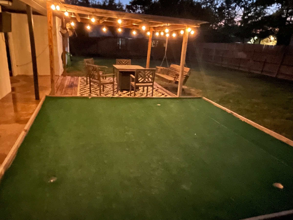 Recently renovated, spacious & bright! This family-friendly home is located 3 miles from campus & on bus Route 34 (FISH CAMP). All New furnishings & mattresses! Perfect for families w/ amenities for children (bunkbeds, ping pong, basketball, high chair, Pack & Play, etc.) Large backyard w/ patio & grill. Great parking & garage. Minutes away from H-E-B grocery store, lovely family parks & biking trails, great selection of restaurants, & Santa's Wonderland! **Strict no pets policy**