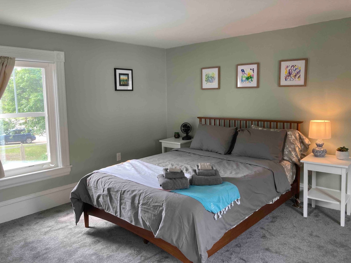 Yakın zamanda yenilenmiş, modern özelliklere ve tasarımlara sahip tarihi ev. Evimiz Burlington şehir merkezinde yer alıyor ve muhteşem göl ve dağ manzaralı bir pencere duvarına sahiptir. Champlain Gölü sahili ve Battery Parkı 10-15 dakikalık kısa bir yürüyüş mesafesinde, Church Street'in tepesi ise 15-20 dakikalık yürüyüş mesafesindedir. 4 yatak odalı, 2 banyolu evimiz, sakin bir semt vahasında yer aldığı için aileler ve sessiz misafirler için harikadır. Arka bahçede gün batımının tadını çıkarmak için bolca alan vardır.
