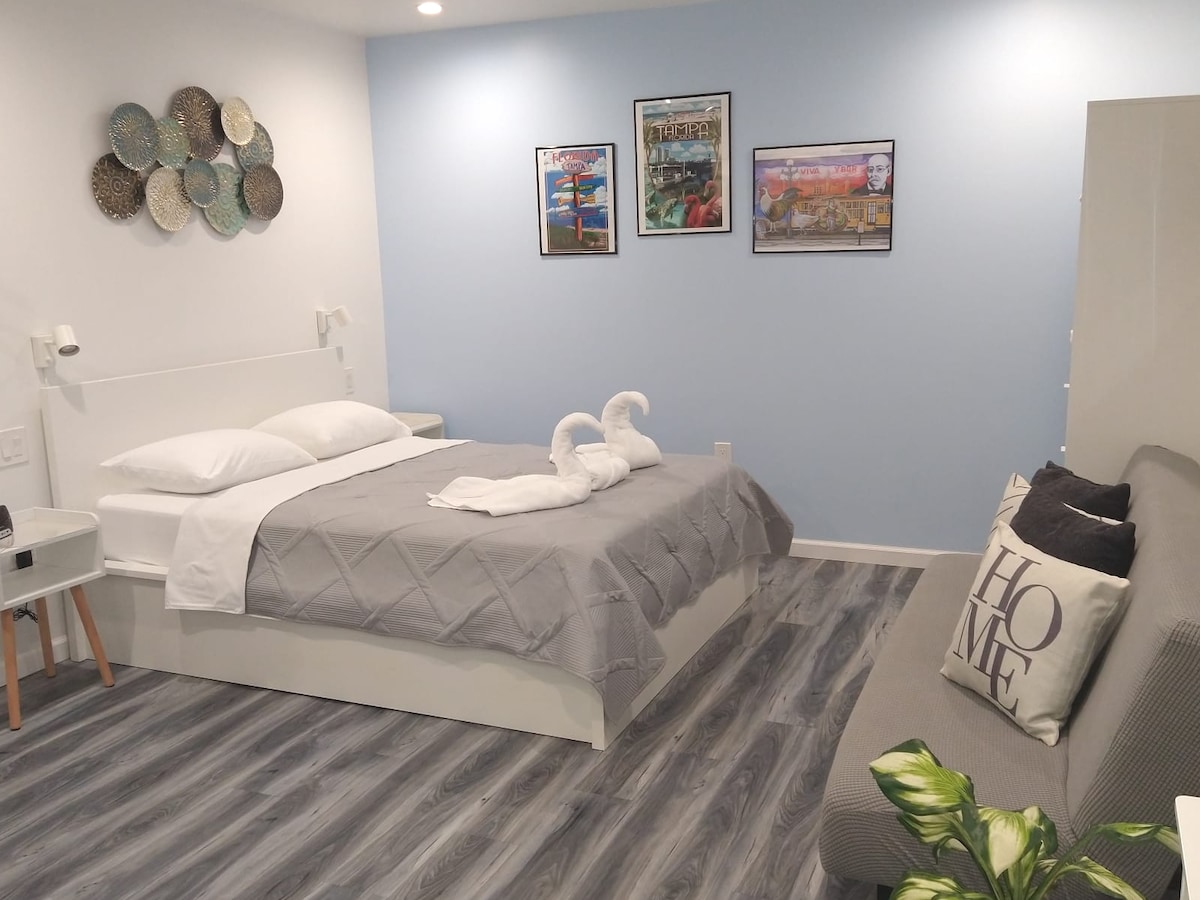 Easy Tampa | Hızlı kablı wifi | Küçük mutfak | Queen boy yatak