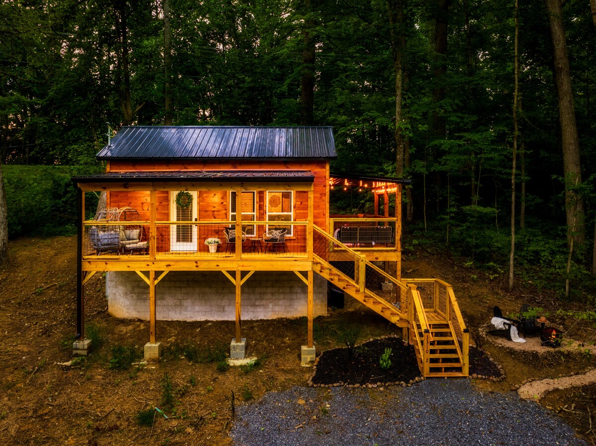 VAHŞİ DOĞADA bir gecelik misafirler Tiny Cabin çok özel insanlardır. Gözlerden uzak kulübeye ulaşmanın tek yolu dağ yürüyüş parkuruna binmek ve geri dönmek veya 4 tekerlekli araçla kulübeye götürülmeyi istemektir (arabayla giriş ve çıkış için 10 $ ek maliyet). Patika, gösterişli ve inanılmaz derecede çeşitli flora ve fauna ile 800 fit tutarlıdır ve ödüllendirici bir macera sunar. VAHŞİ DOĞA kulübesi, yüksek rakımda Smoky Mountain sıradağlarına bakan ağaçların arasında ormanda yer alıyor.