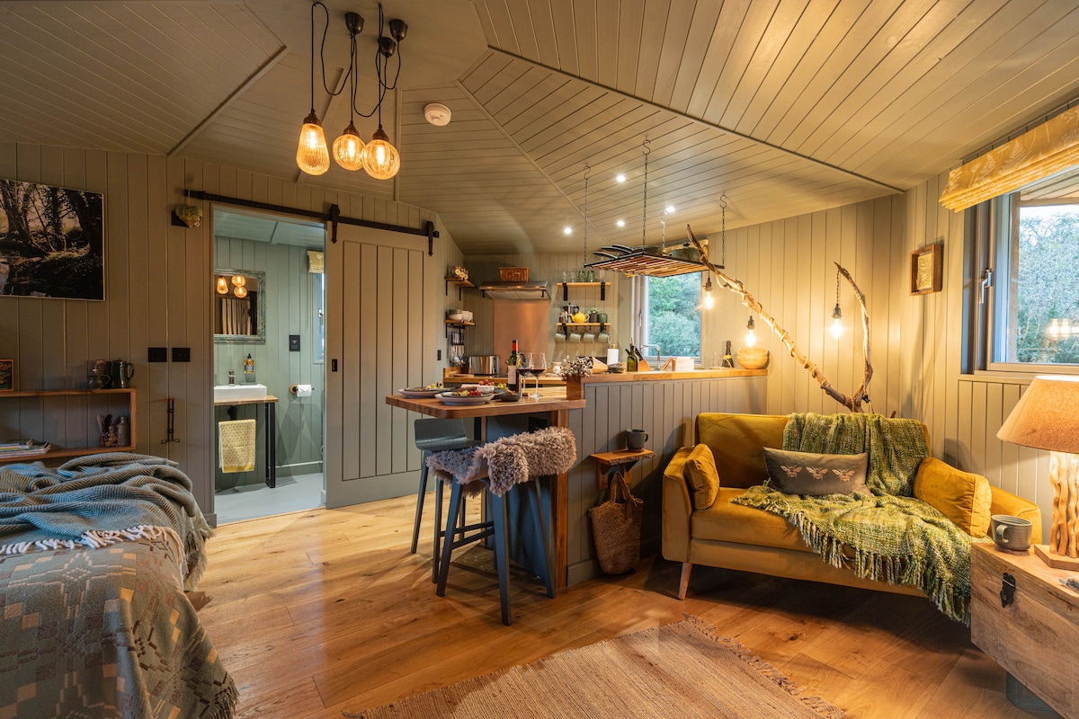 Copper Hide, Galler'in batı kıyısındaki Arth Valley Retreat'te benzersiz bir kaçış noktasıdır. Bu eski süt sağımhanesi birkaç yıl önce konut haline getirildi, ancak yakın zamanda (2024) tamamen yenilendi. Kayar kapaklı küvet, büyük yıldız izleme pencereli asma kat yatağı ve odun sobası. Konaklamanız sırasında şelaleleri olan bir nehre akan vadimizde dolaşmakta özgürsünüz. Denize sadece birkaç dakika uzaklıkta. Gelin ve doğanın kucağındaki bu romantik mekânın tadını çıkarın.
